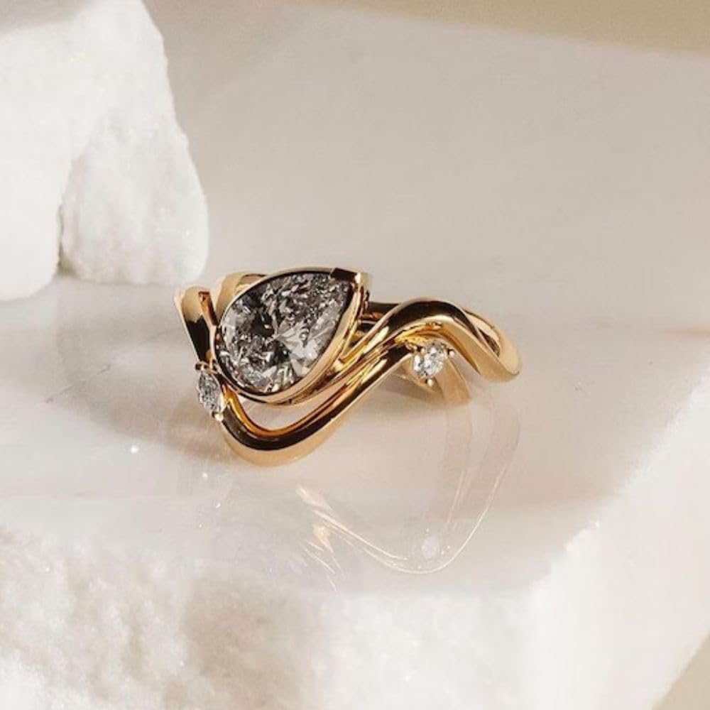 Pear Cut Diamond Wave Bridal Set Wedding Bezel Set Engagement Band Ring 14K Yellow Gold Finish Handmade Customized 925 Sterling Silver Beautiful Anniversary Ring Christmas Gift. Material: Sterling Silver, which keeps glossy for a lifetime and is not harmful to people. Sterling Silver's strength makes it an excellent choice of material for jewelry. It is resistant to scratching and it will retain its beauty for years. Excellent Quality, Good Price, Comfort Fit Safe, and Comfortable to Wear in Daily Life. Gift idea: A wonderful gift for yourself, your lovers, your friends, your family, or other people dear to you on many occasions: birthdays, Christmas, dating, graduation, wedding, Mother's Day, engagement, Valentine's Day, and any special dates to you. Please carefully check the ring size you need before purchasing. We strive our best for your satisfaction. All your responses are valued highly and will be used to further improve the quality of our service and products. Please feel free to contact us if you have any questions!