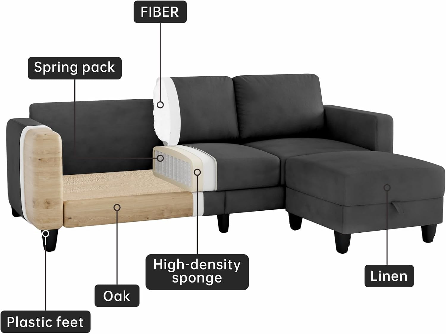 | Material Features | High-density Sponge, Iron Frame, Removable Cover, Solid Oak Frame, Spring Seat Cushion |