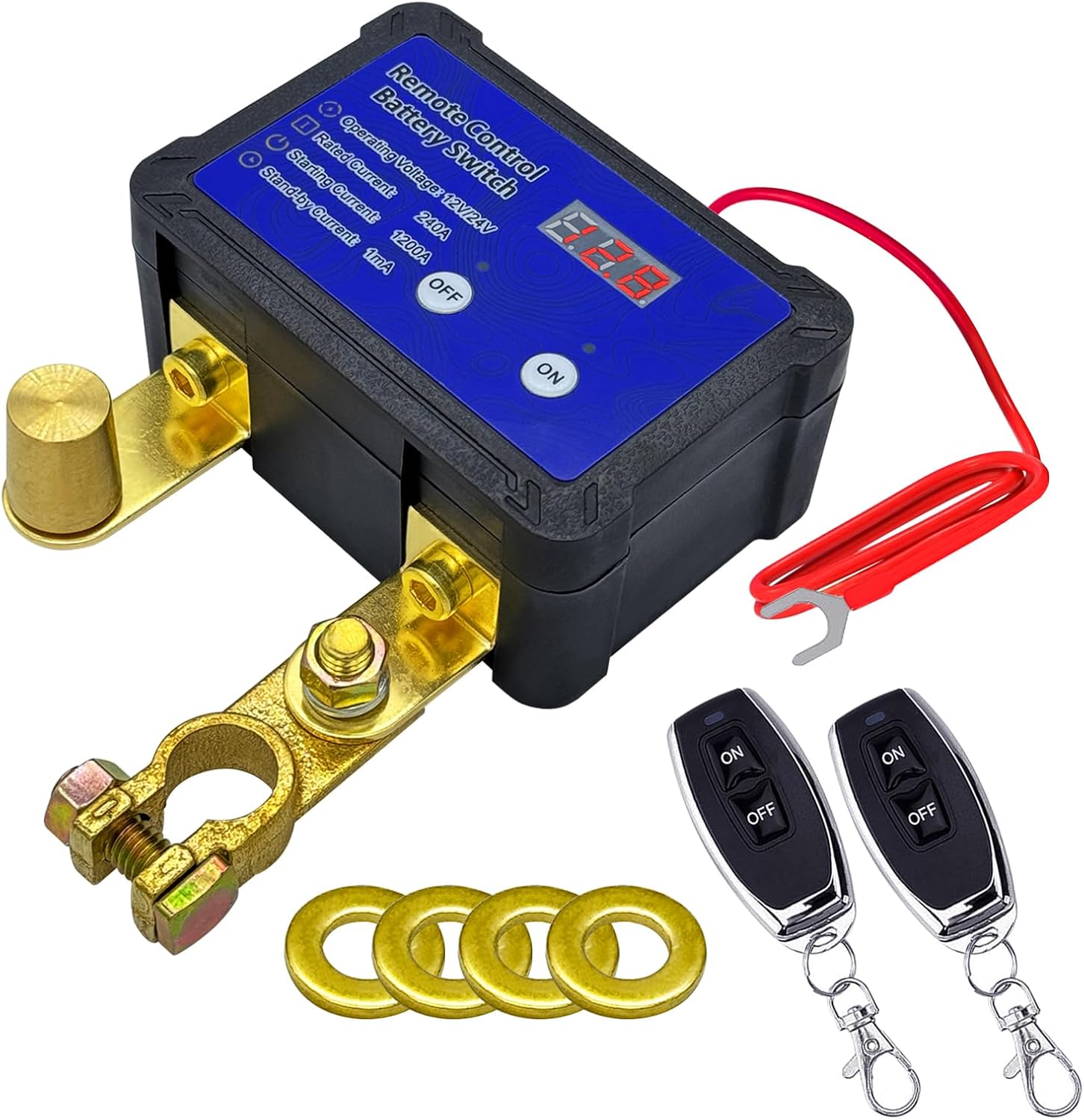 Ampper 1-2-Both-Off panel mounted battery switch, battery power master switch disconnect isolator for car, vehicle, Rv, boat and more. Specifications: 1, Design for 2 batteries, can switch to battery 1 / battery 2 separately or both and off together. 2, ABS plastic housing, durable made for safety use. 3, NO rear and side pads / covers for surface mount application. 4, 1-2-Both-Off 4 positions. 5, Copper terminal studs with nuts and washers. 6, 4 mounting screw holes. 7, 275 A continuous at DC 12V, 455 A Intermittent at DC 12V, 1250 A momentary at DC 12V. 8, Used for DC 12 - 48V systems panel mounted to isolate and secure the electrical system. 9, Can stand alone or be locked together with other switch. 10, Eliminate any power draw from the battery when vehicle or boat is not in use. 11, Disconnects the battery safely. 12, Universal used for Car, Vehicle, RV, Boat and More. 13, Used as electrical equipment's switch. 14, Size: 2.68" x 2.68" x 2.75". Complete kits includes: 1 x battery switch. 4 sets of mounting bolts.
