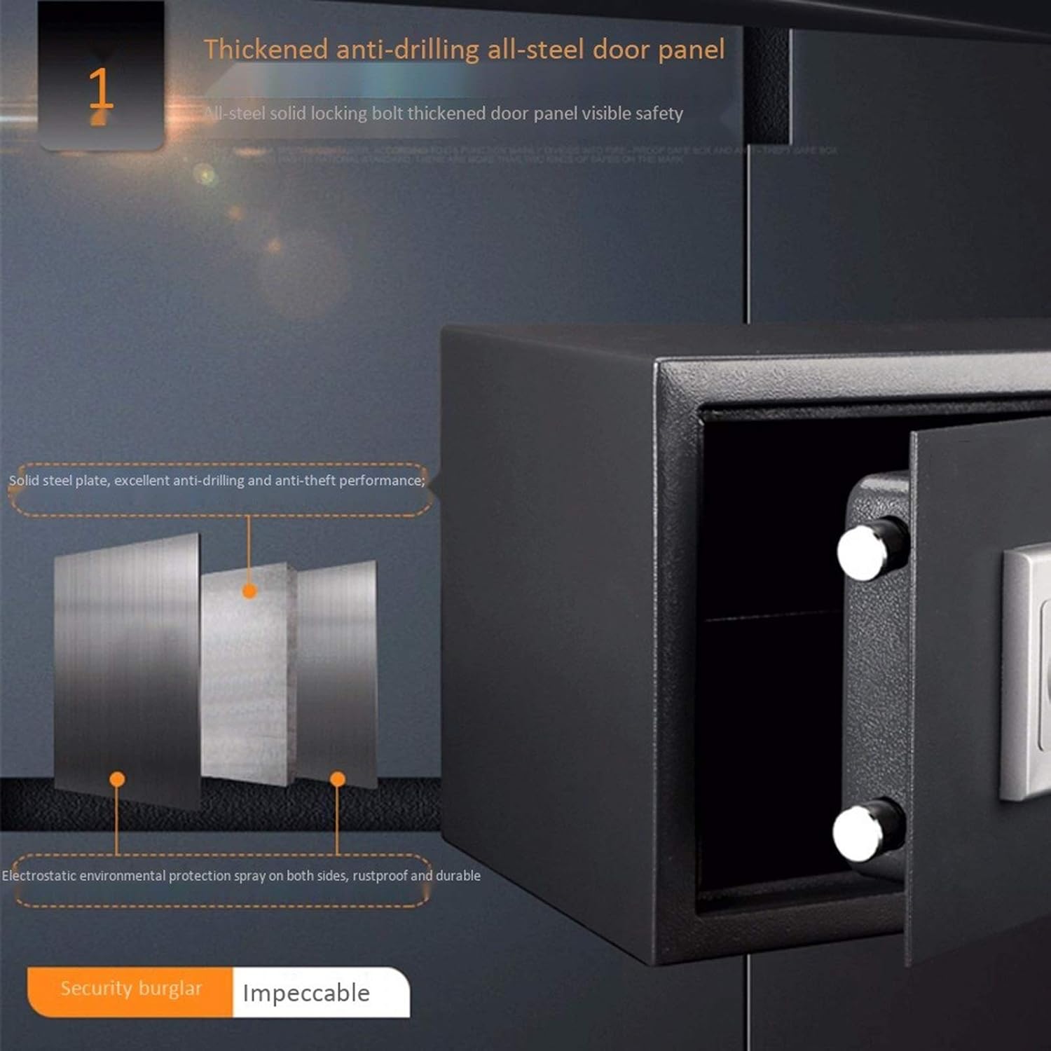 Safe and worry-free: The safe has been rigorously tested to provide a high of security, protecting your belongings from theft and accidental loss. Fireproof and waterproof: The safe is not only anti-theft, but also has excellent fireproof and waterproof performance, ensuring that your important documents and belongings are intact in the event of an accident. Multiple size options: A variety of specifications and designs are available to meet different needs, whether it is home, office or commercial venues, there is always one suitable for you. Simple design: The stylish and simple appearance design is not only safe, but also can be perfectly integrated with various home or office environments, enhancing the overall beauty of the space.