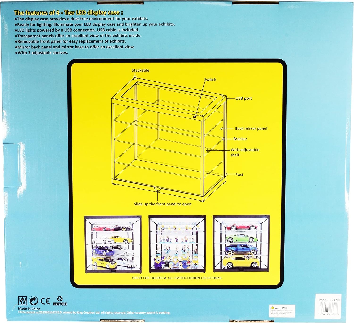 Brand new Collectible 4-Layer Display Showcase with USB Powered LED Lights Black for 1/18 1/24 1/32 1/43 1/64 scale models MJ7840MBK