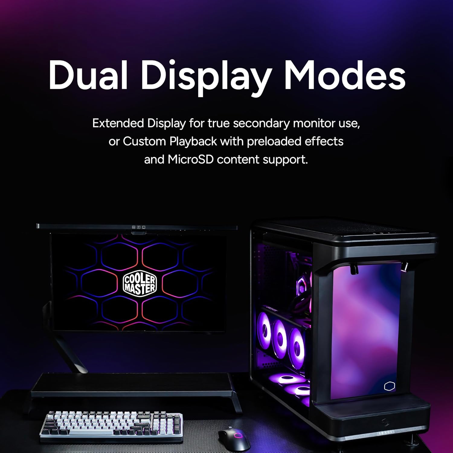 The Cooler Master MasterFrame 360 STAGE LCD is built for PC enthusiasts and creators who want their system to be more than just powerful—it’s meant to be seen. Inspired by concert stages, this open-frame chassis features an integrated front-facing LCD screen that turns your PC into a dynamic visual centerpiece. Whether displaying system stats, animated effects, or custom media, the STAGE LCD enhances both performance builds and collectible showcases. Users can run the display as a true secondary monitor or upload personalized JPG and MP4 content via MicroSD card for a fully customized experience. Designed with flexibility in mind, the MasterFrame 360 STAGE LCD supports Mini-ITX, Micro-ATX, and ATX motherboards, including modern BTF back-connect layouts. It offers massive compatibility for high-end components, supporting GPUs up to 430mm and PSUs up to 210mm, along with a PCIe 5.0 riser cable for vertical GPU mounting right out of the box. Cooling performance matches its bold presentation. With support for up to twelve 120mm fans, fan sizes up to 200mm, and 360mm radiators, this chassis is ready for advanced air or custom liquid cooling configurations. Finished with future-ready front I/O, including USB 4.0 Type-C, and generous cable management space, the MasterFrame 360 STAGE LCD delivers a clean, powerful, and visually striking platform—built to showcase your vision without compromise.