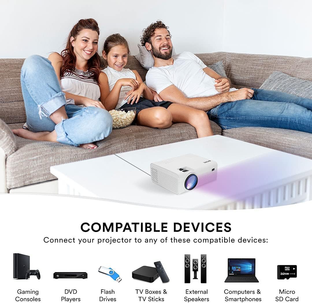 Upgrade your entertainment setup with the Core Innovations 150” Home Theater Projector. Featuring an adjustable screen size between 32”-150” and 45 lumens of brightness, this projector produces vibrant on-screen images, perfect for solo gaming marathons or an immersive movie night experience with the entire family. Stream videos, view photos or play your favorite games by linking your preferred device to this projector via numerous versatile connections, including HDMI, VGA, USB, Micro SD and AV. A powerful LED bulb provides rich and dynamic details and stunning images, while the focus adjustment knob and keystone correction makes image distortion a thing of the past. Built-in speakers provide clear sound straight from the projector and the included remote allows for effortless control from across the room. Bring new meaning to home entertainment.