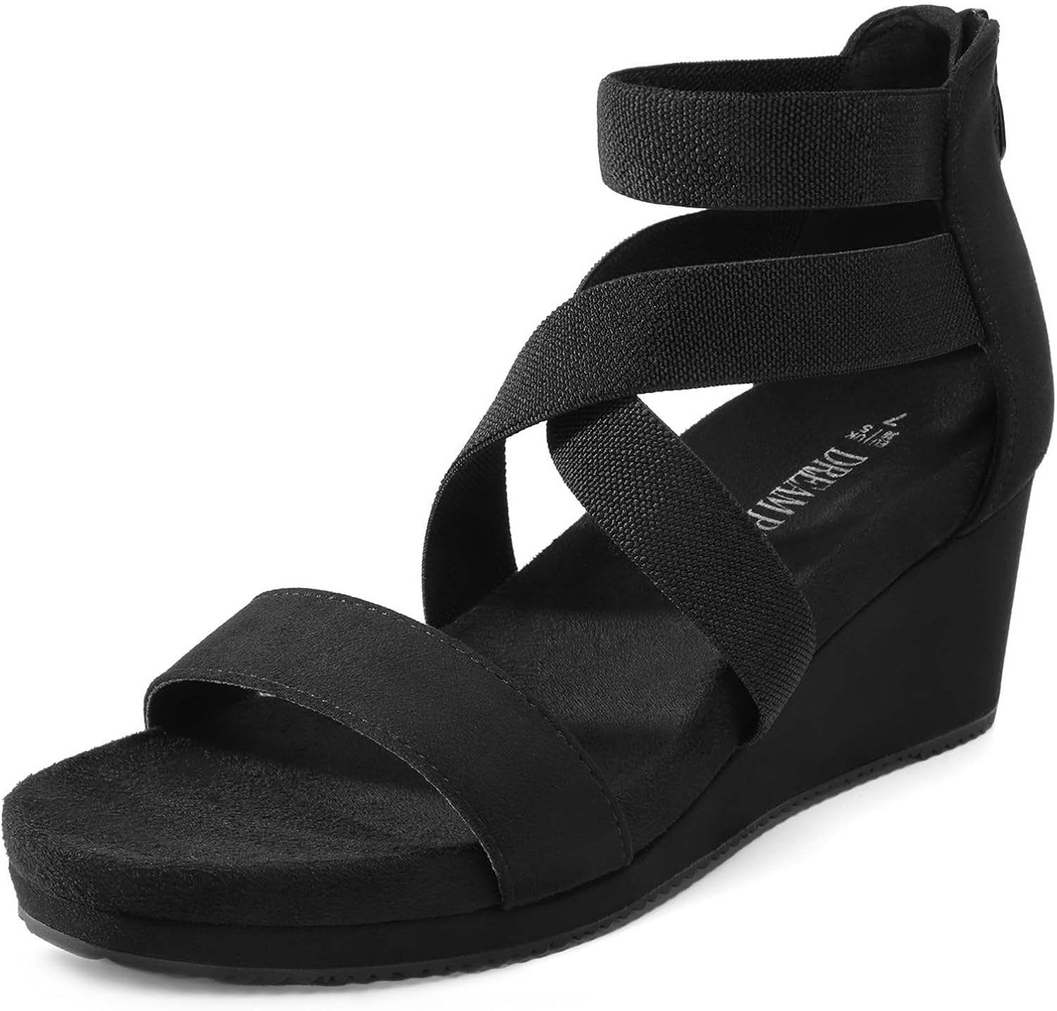 Elevate your style with these versatile womens sandals. Featuring a 0.75-inch platform and 2.35-inch heel, they offer the ideal balance of lift and support. The elastic crossover straps provide a snug, secure fit, while the convenient zipper closure ensures easy on-and-off. With a soft fabric footbed for all-day comfort, these sandals seamlessly pair with dresses, skirts, or jeans, making them a must-have for any summer outing, from city walks to beach days.
