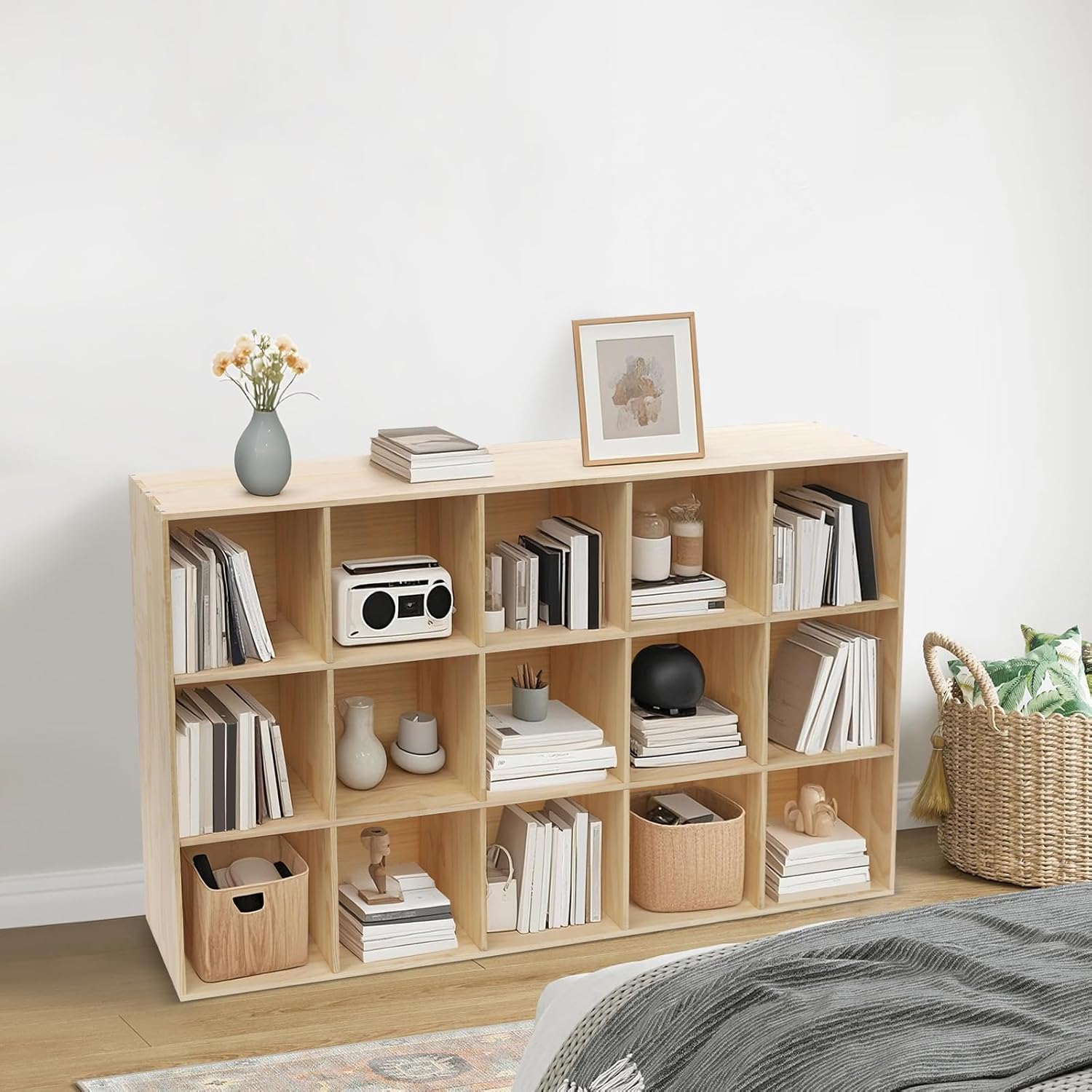DescriptionThis solid wood bookcase, with its simple and elegant design and excellent practicality, has become an ideal choice for modern homes. It is made of premium solid wood, which is sturdy and robust. Spacious storage space can adapt to various space requirements. The exquisite mortise and tenon structure makes it not only a practical storage solution but also a decorative item that enhances home taste. SpecificationMaterial: Solid WoodColor: Wood ColorStyle: ModernShape: RectangularAssembly Required: YesMount Type: Floor-MountedNumber of Compartments: 12Single Cube Size: 30*30*30cm/11.81*11.81*11.81inSingle Tier Loading Capacity: 20-25kg/44-55lbsProduct Size: 180*30*60cm/70.87*11.81*23.62inPackage Size: 191*37*11.5cm/75.2*14.57*4.53inGross Weight: 18.2kg/40.12lbsNet Weight: 17kg/37.48lbsApplicationThis product can be widely used in living rooms, bedrooms, kitchens, dining rooms, study rooms, children's rooms, daycare centers, kindergartens, libraries, hotels, apartments, and homestays, for placing books, toys, photo albums, plants, and daily necessities (not included).Package Included1 * Solid Wood Bookcase4 * Protective Covers1 * Chinese DiagramOther Accessories for AssemblyNotes1.Please note that this product does not include any other items.2.Please allow the slight color difference caused by the shooting light and 1-3cm error due to manual measurement, and make sure you do not mind before ordering.