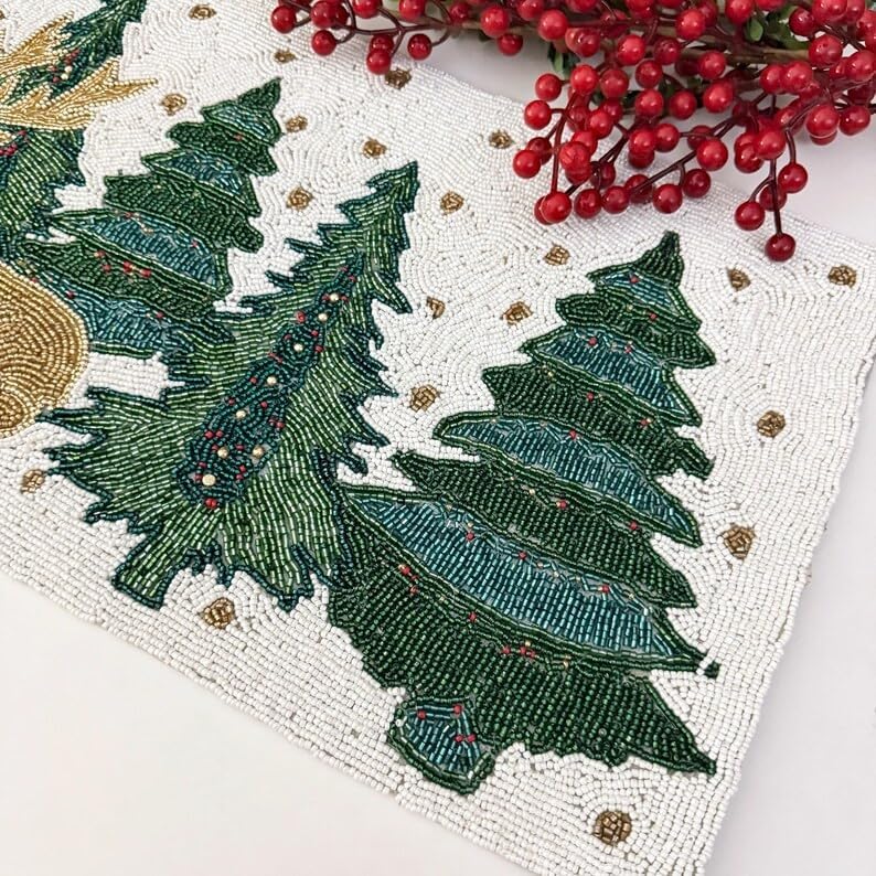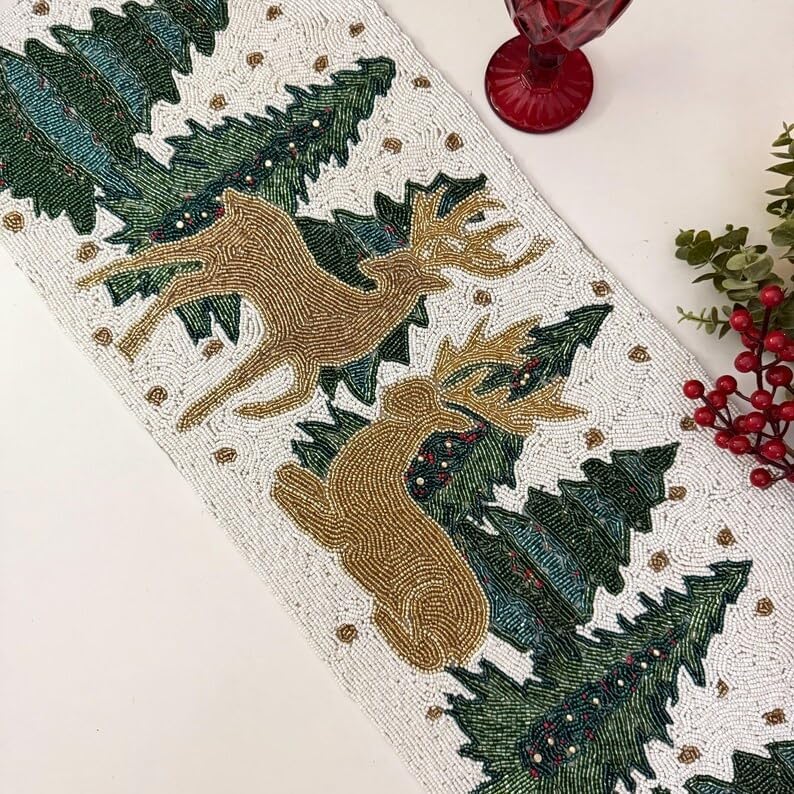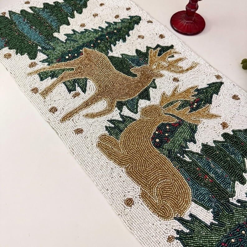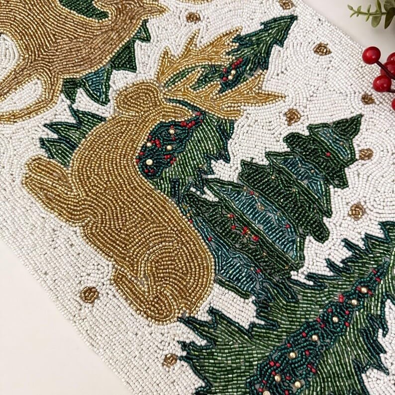 This beautiful Christmas reindeer runner is made using multicolour beads. This looks stunning on any table. A must-have for this Christmas. A great gift too. These are handmade products and are done with a lot of precision. We use the best beads to create the design. This runner looks great on the centre table or dining table. While creating this runner, we take extra care to tie all the knots and secure them properly. These are ideal for the living room and dining room. This will add glamour, texture, and interest to your table.