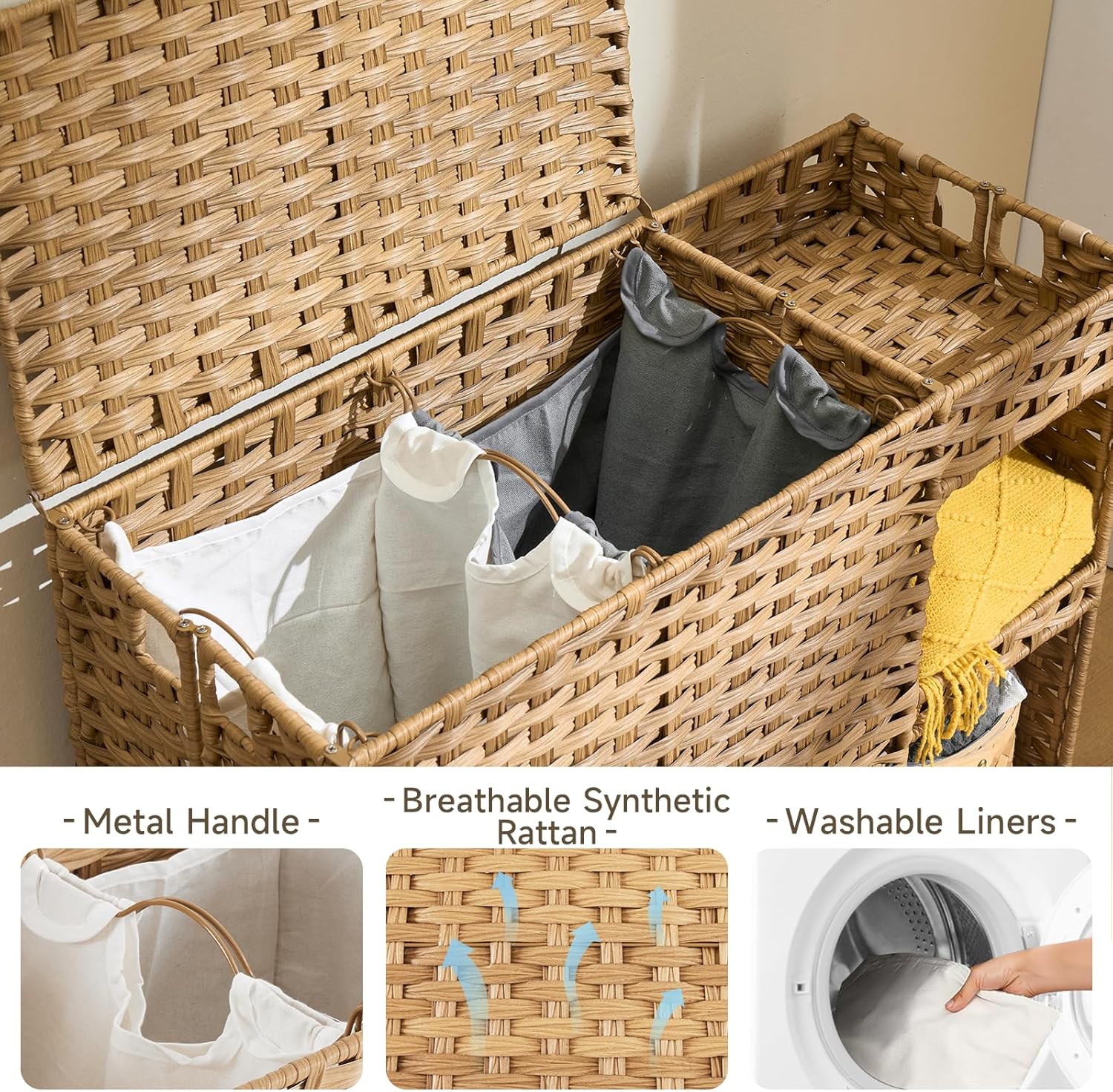 | Included Components | 1 x Handwoven Rattan Lid; 4 x Removable Cotton Liner Bags; 1 x Accessories Bag; 1 x Instruction |