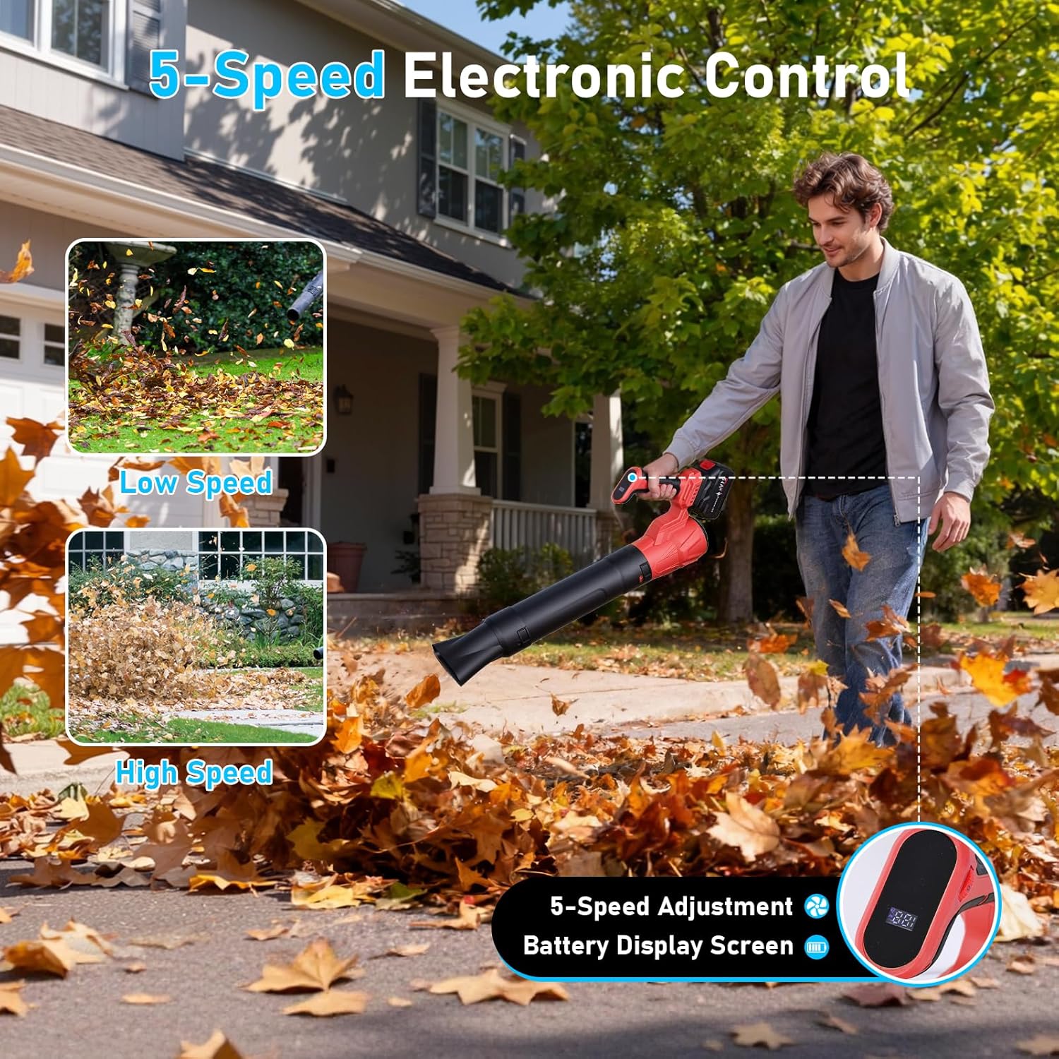 -Description::Introducing the Beautiq Cordless Leaf Blower, your ultimate partner for effortless outdoor maintenance. This high-performance electric leaf blower delivers powerful cleaning with 5 adjustable speed settings, reaching up to 26000 RPM and 240 CFM air flow for a intense 111 MPH wind speed. As a battery powered leaf blower, it offers the freedom of cordless operation, making it ideal for blowing leaves, water, dust, and more in lawns and gardens. With two 4.0Ah batteries, this cordless blower provides up to 12 minutes of runtime on max speed per battery and 18 minutes on low speed, while the built-in display keeps you informed on battery life. Designed for durability and ease, this leaf blowers model ensures efficient debris removal without the mess. Upgrade to this reliable electric leaf blower for a cleaner yard—it's a top choice among leaf blowers battery powered tools for homeowners seeking convenience and power. Experience the versatility of this battery powered leaf blower in handling various tasks, from leaf clearing to light snow removal, and enjoy the eco-friendly benefits of a cordless blower that reduces noise and emissions. With its user-friendly features and robust performance, the Beautiq leaf blowers series stands out as a must-have for any outdoor enthusiast.Specifications:Brand: BeautiqType: Cordless Leaf BlowerSpeed Settings: 5Motor Speed: 26000 RPMAir Flow: 240 CFMWind Speed: 111 MPHBatteries: 2 x 4.0AhRuntime: Max 12 minutes per battery, Min 18 minutes per batteryFeatures: Battery life displayUsage Tips:Fully charge batteries before first use for optimal performance.Adjust speed settings based on the task to extend battery life.Clean the blower after use to maintain efficiency and longevity.