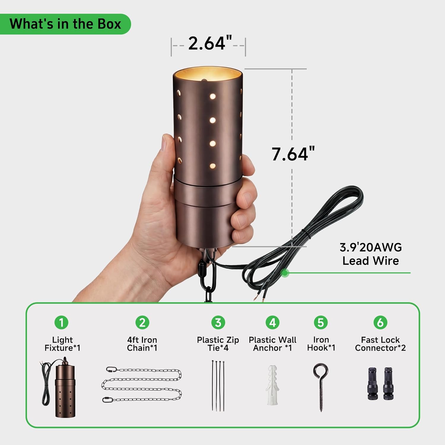 | Included Components | 2 Fast Lock Connector, 4ft lron Chain, Aluminum Pendant Light, Instruction Manual, lron Hook |