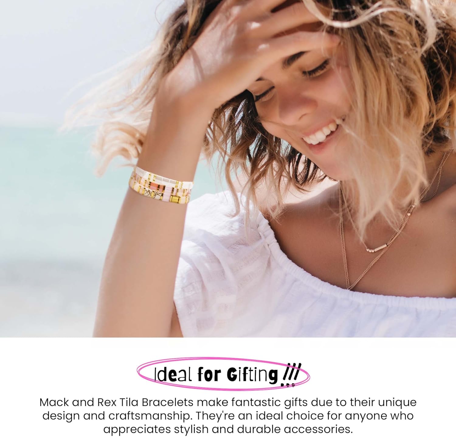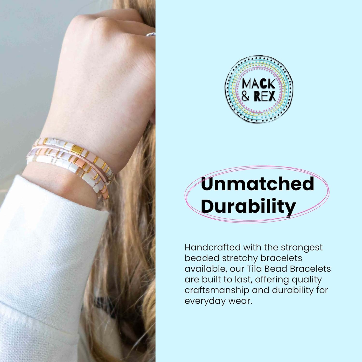 Introducing the TOTALLY CHIC Bracelet Stack by Mack and Rex, featuring a vibrant assortment of Tila beads that create a striking and stylish accessory to elevate any outfit. Handcrafted with the strongest beaded stretchy bracelets available, these pieces ensure enduring durability and everyday comfort. Lightweight and waterproof, they effortlessly complement your active lifestyle while adding a personalized touch to your look. Finding the right fit is simple with our easy sizing options, whether you prefer our string measurement method or choose based on your t-shirt size. Ideal for layering or wearing solo, the TOTALLY CHIC Bracelet Stack is not only a fashion statement but also makes for a thoughtful and enduring gift for any occasion.