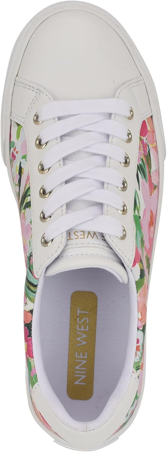Perfectly essential, the Layna lace up sneaker is the white sneaker you've been looking for. It has a classic silhouette that is an everyday favorite. It features a tonal Nine West logo along the heel and the tongue.
