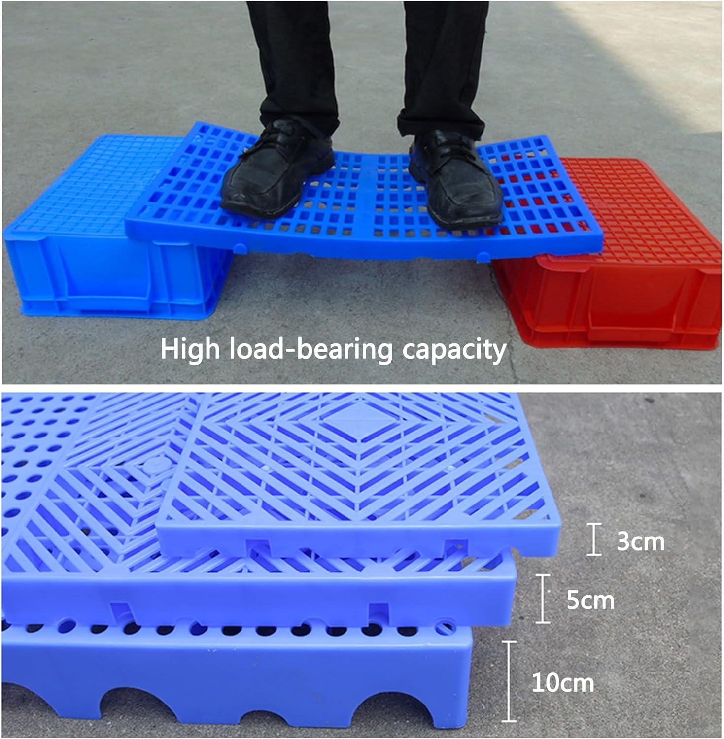 Brand: PFCDZDU"Penfei" STORE INTRODUCTION:Mainly engaged in the global sales of furniture accessories, outdoor products and accessories.There are many stylish and customizable products in the store, if you have any needs, please contact us by email. Welcome to our store, I wish you a happy shoppingPRODUCT FEATURES:- The whole pad is hollow design, which is light and does not accumulate water, and at the same time, it can maintain air circulation when the cargo is piled up for a long time.- Pallets can be used in warehouses, storage rooms, manufacturing and other industrial environments.- Plastic Pallets stack storage can save space and use reasonably.PRODUCT PARAMETERS:Model: PF-230408Product name: Grid Plastic Tray/Tray card boardMaterial: Polyethylene(Plastic)Color: BlueProduct size: (L x W x H)80x60x13.5cm , 80x80x14cm , 100x60x14cm , 100x70x14cm , 100x80x14cmProduction method: Thickened design, strong load-bearing, durable, wear-resistant and fall-resistantApplicable scene: warehouse, indoor, outdoor, poultry and livestock nestPACKAGE CONTENT: 1/2/5PCS x Plastic PalletNote: Please choose the size before buying.