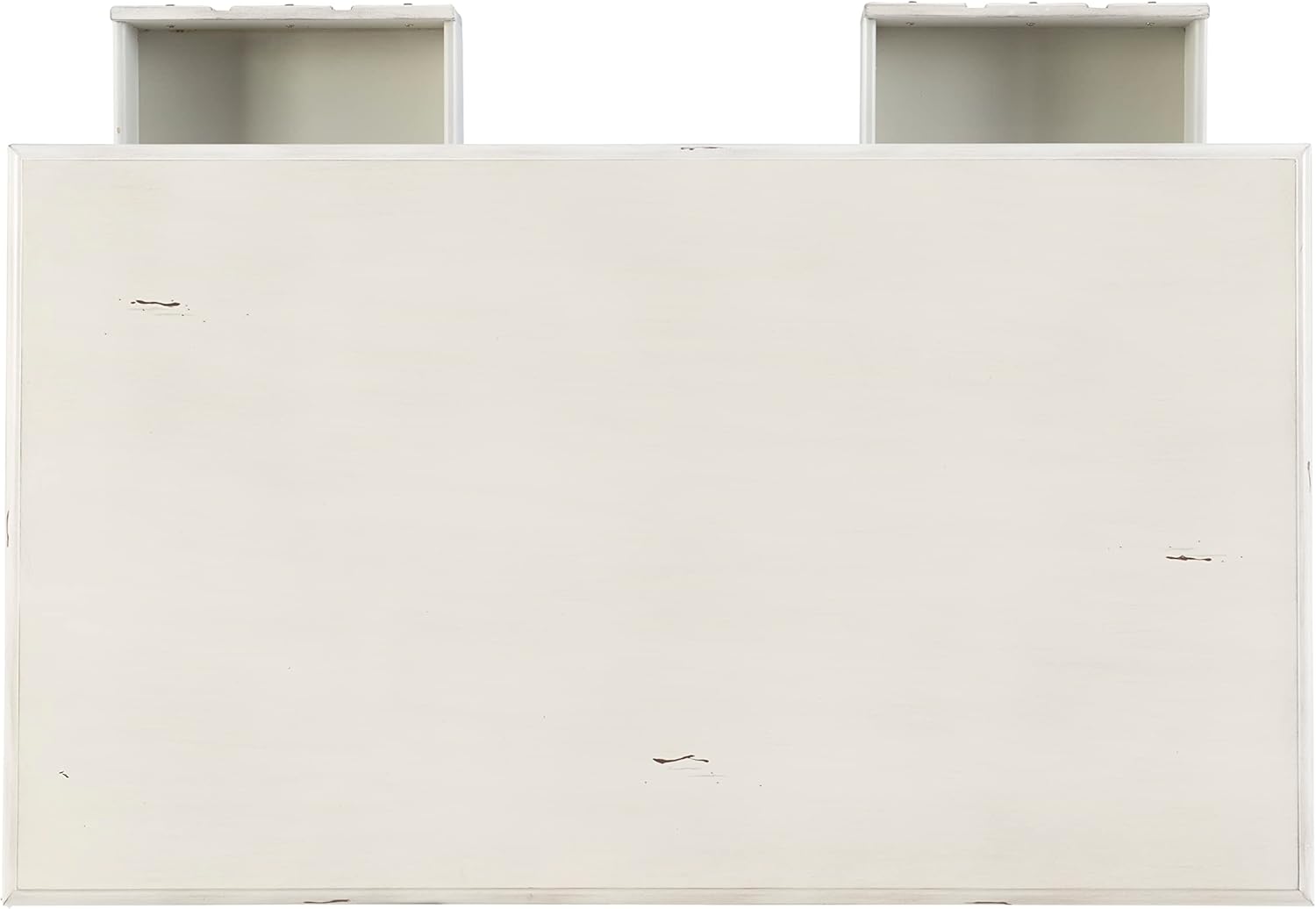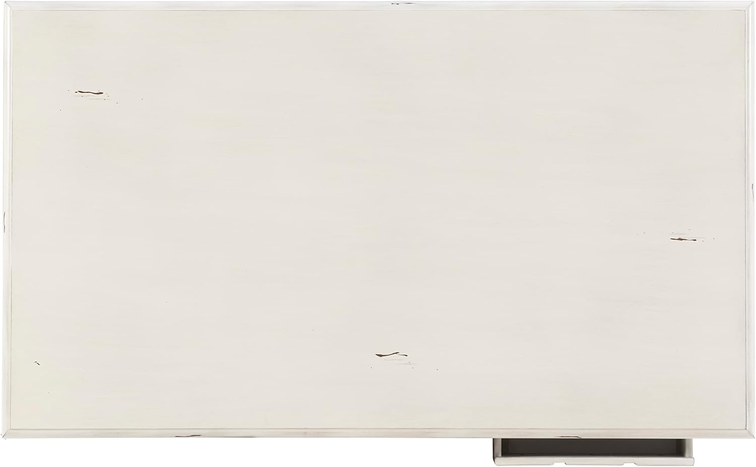 This chic coffee table will bring boho style and out of sight organization to your living room or den. 3 spacious drawers span the width of the table and can be opened on either side. A distressed cream finish offers a vintage look that's accentuated by the round metal drawer pulls in antiqued bronze. On the lower level, an open shelf provides plenty of space to stow away linens, magazines and any other miscellaneous items you’d like to keep readily accessible. Tasteful and dependable, this coffee table is sure to bring a whole new feel to your living space.