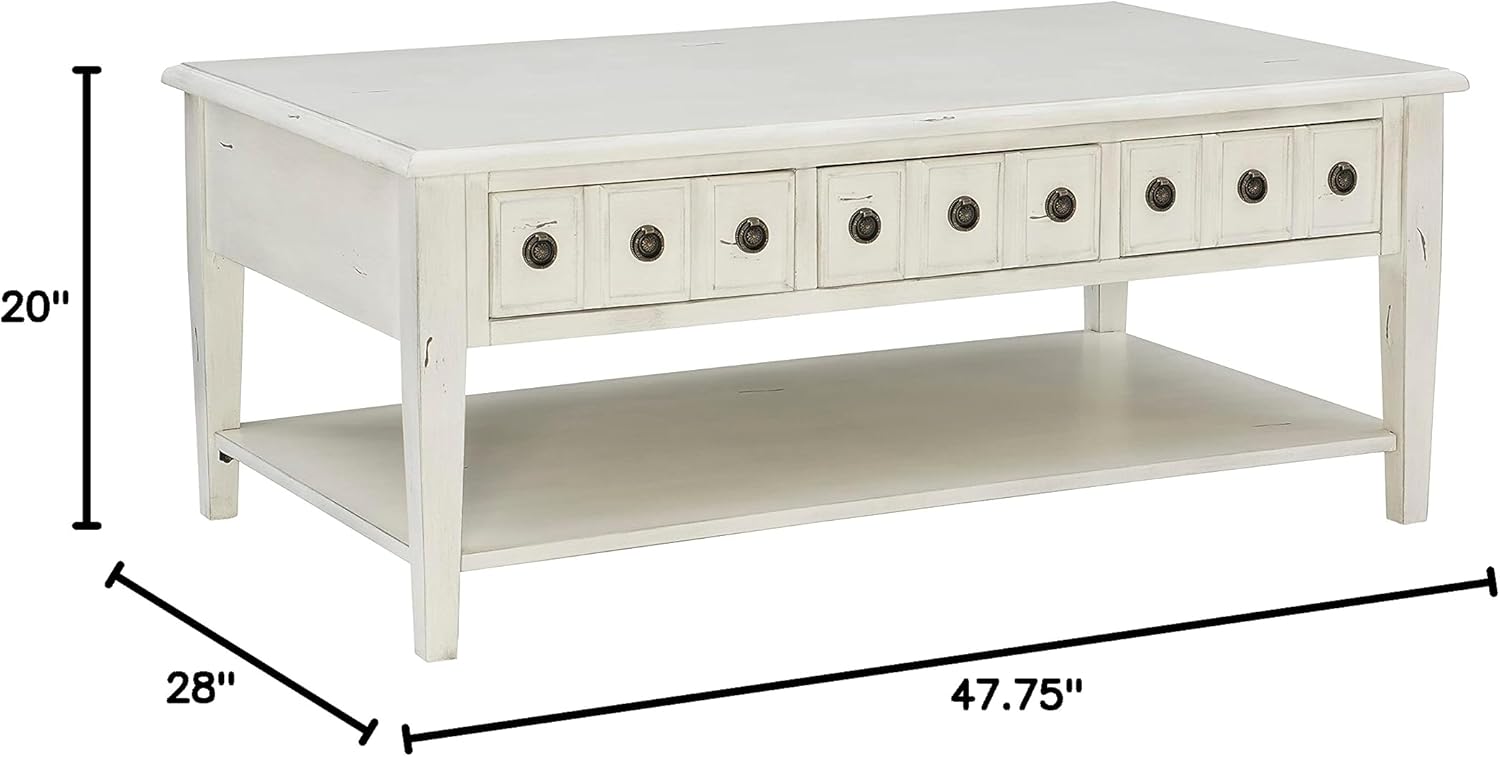 | Model Name | Powell Kelly Cream Coffee Table with Three Pull Thru Drawers and Open Shelf |