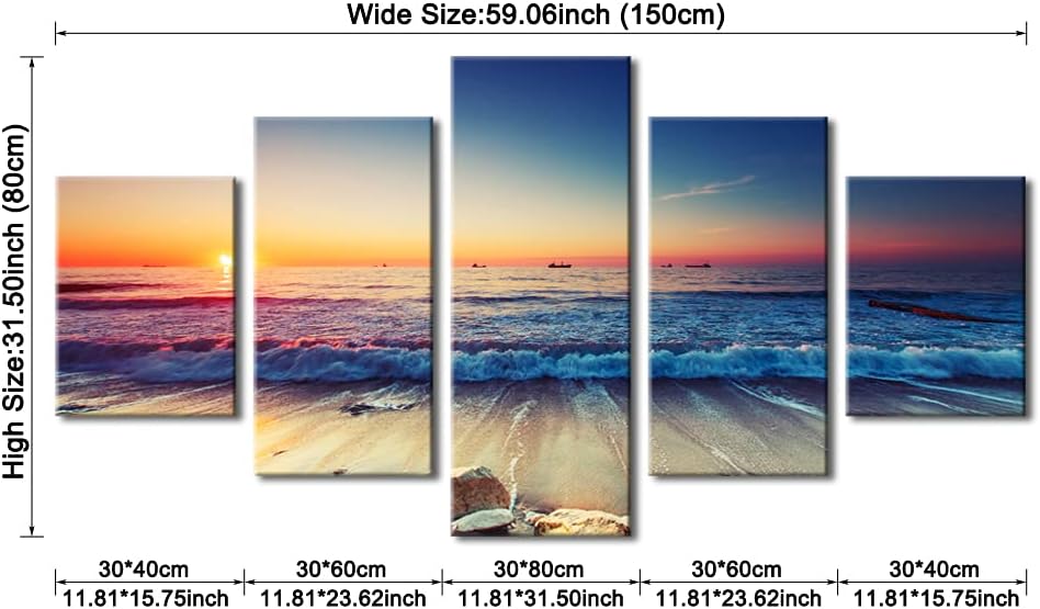 | Special Features | 5-piece wall art set, high definition modern ocean beach canvas paintings, printed side margins, ready to hang |