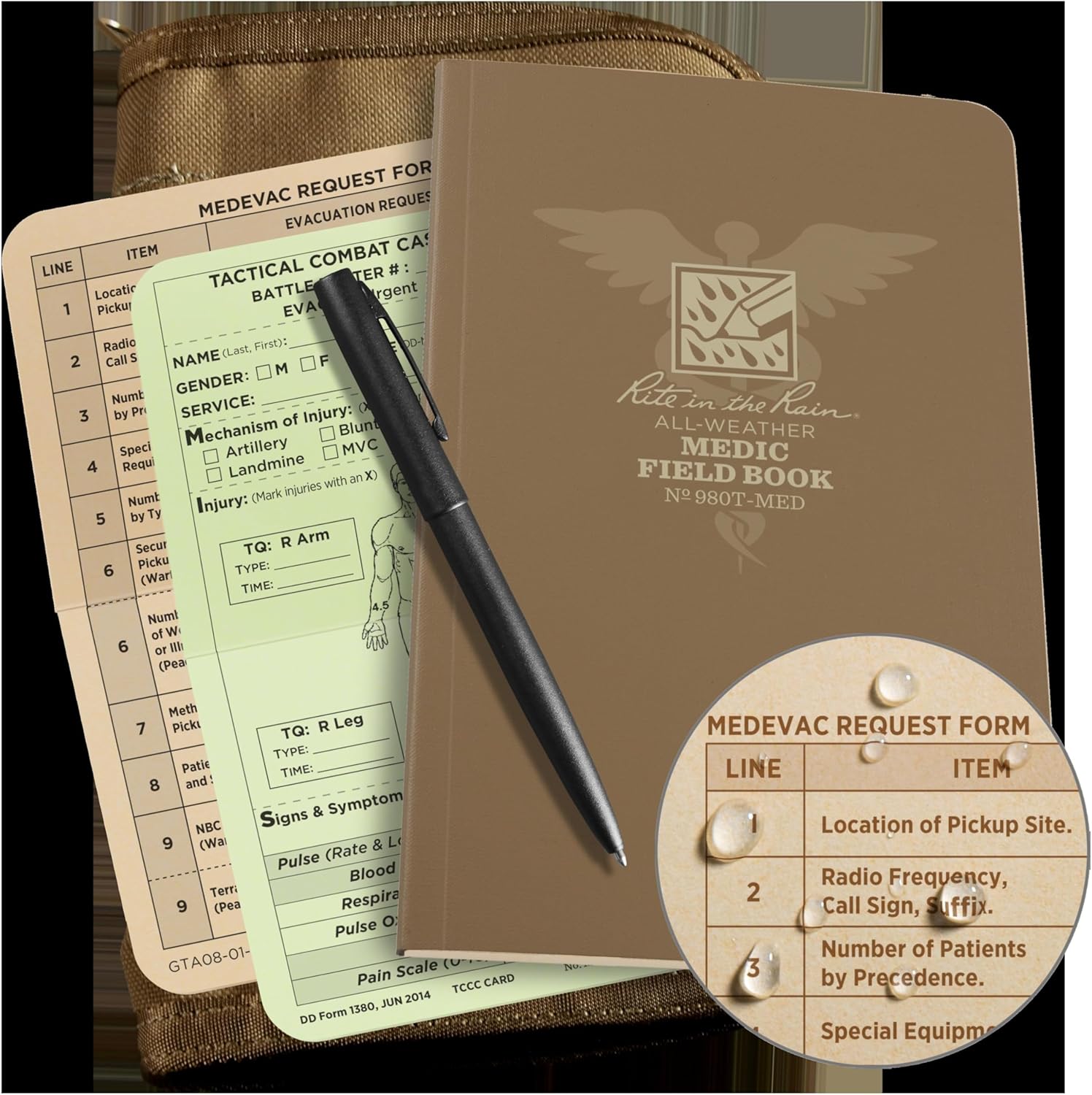 When every moment counts, you need gear that’s TESTED, TRUSTED, and TOUGH. This prolonged Casulaty Care Kit is designed for medics, combat lifesavers, and search & rescue pros to track patient vitals while in the harshest conditions. Included in the kit is: No. 980T-MED Prolonged Casualty Care Medic Book, No. MIST991 TCCC/MIST Cards (50-pack), No. 9L991T 9-LINE MEDEVAC Cards (50-pack), No. 97 All-Weather Metal Pen, and No. C980 CORDURA® Fabric Book Cover.
