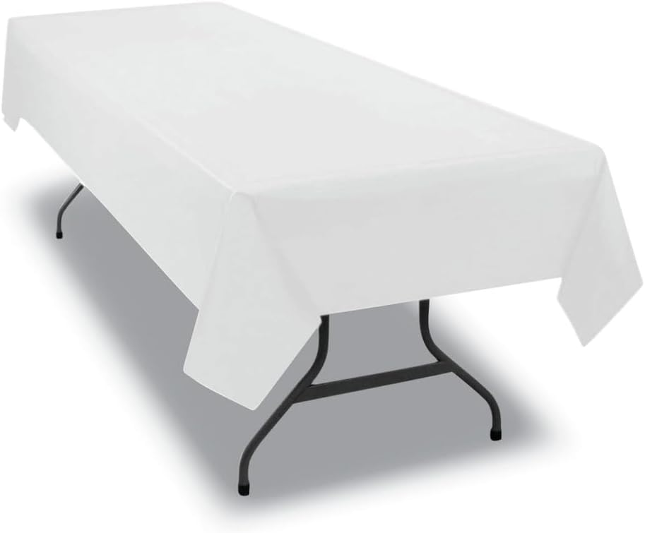 Rectangular table set, heavyweight plastic, 54 x 108 inches, white, 6-pack