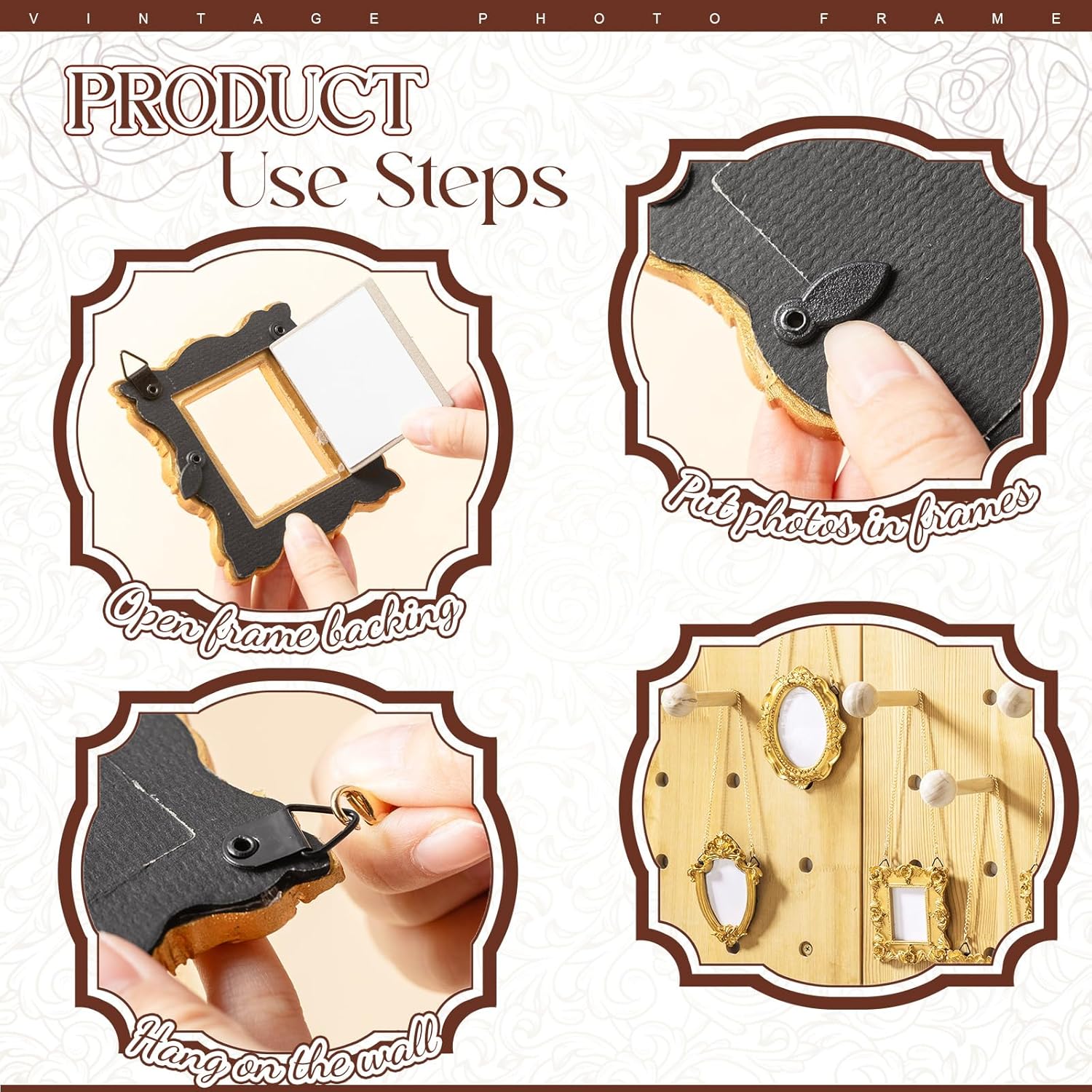 | Included Components | 12 x Vintage photo frames, 12 x Chains |