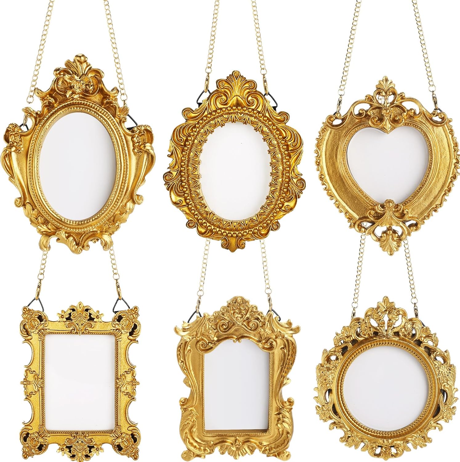 Features: Handmade gifts: You can prepare exquisite gifts with these mini photo frames and give them to your friends, family, colleagues or others on birthday parties, wedding parties, Christmas, Thanksgiving, Valentine's Day and housewarming occasions. Vintage and nostalgic: Our mini gold frame evokes nostalgia. The shiny gold color paired with the vintage style not only adds a decorative edge to any space, but also enhances the beauty of your photos. Specifications: Material: resin Color: gold Chains size: about 12.6 inch /32 cm in length Package includes: 12 x Vintage photo frames 12 x Chains Notes: Manual measurement, please allow slight errors on size. The color may exist a slight difference due to different screen displays
