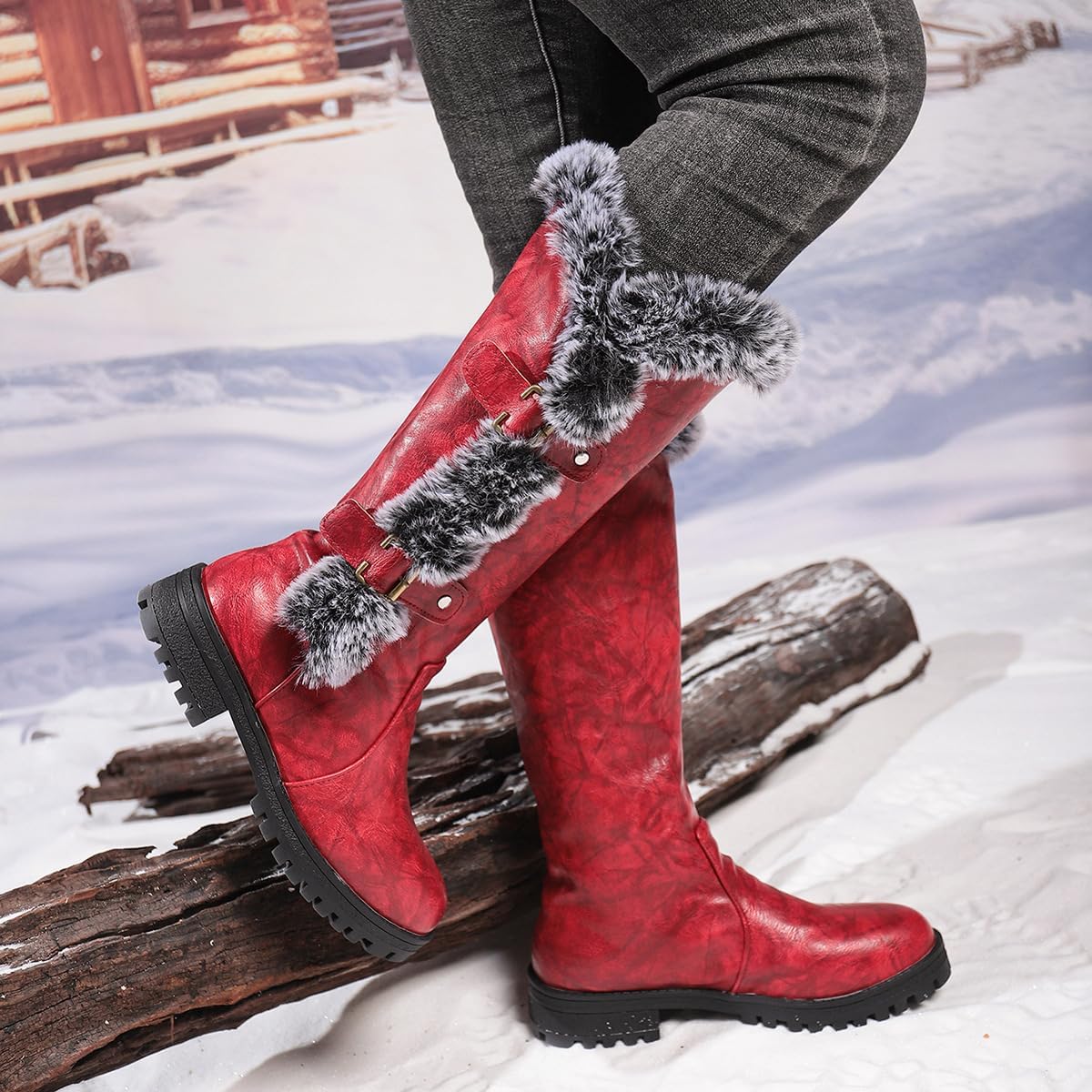 Women's Thick Plush Mid-Calf Snow Boots, Chunky Platform Waterproof Leather Fur Lined Riding Boot Warm Non-Slip Slip-On Knee-High Booties FeatureThese women's mid-calf, knee-high snow boots feature thick plush fur lining and waterproof leather for warmth and protectionThe chunky non-slip platform sole ensures stability, while the slip-on design offers easy wearStylish and cozy for any winter occasion when you own our women's winter fleece-lined warm snow boots Specifications Product Category: Fur Boots Boot Shaft Material: Leather Sole Material: Rubber Closure: Slip-on Upper Material: Synthetic Leather Colors: Burgundy, Dark Brown, Black Heel Shape: Chunky Heel Sizes: 36, 37, 38, 39, 40, 41, 42, 43 Wearing Method: Slip-on Gender: Women Suitable Season: Winter, Autumn Packaging List:1x Women's Thick Plush Mid-Calf Snow Boots Women's Mid-Calf Snow Boots, Thick Plush Lining Riding Boots Platform Chunky Heels Warmth Furry Snow Boots Casual Thermal Winter Boots for Women Waterproof Fur Lined Warm Mid Calf Boots