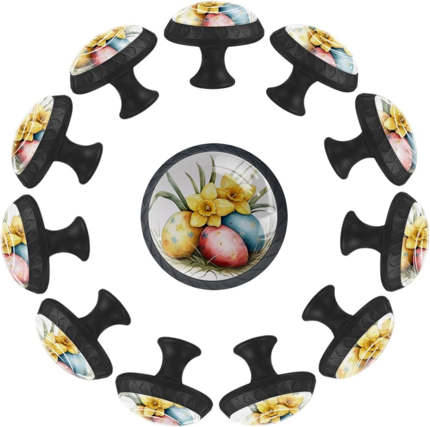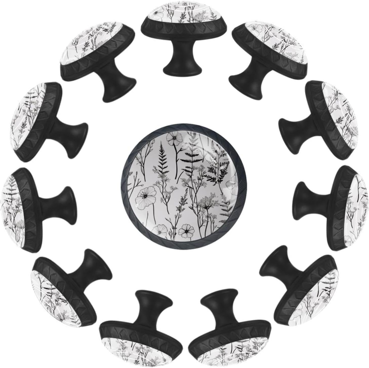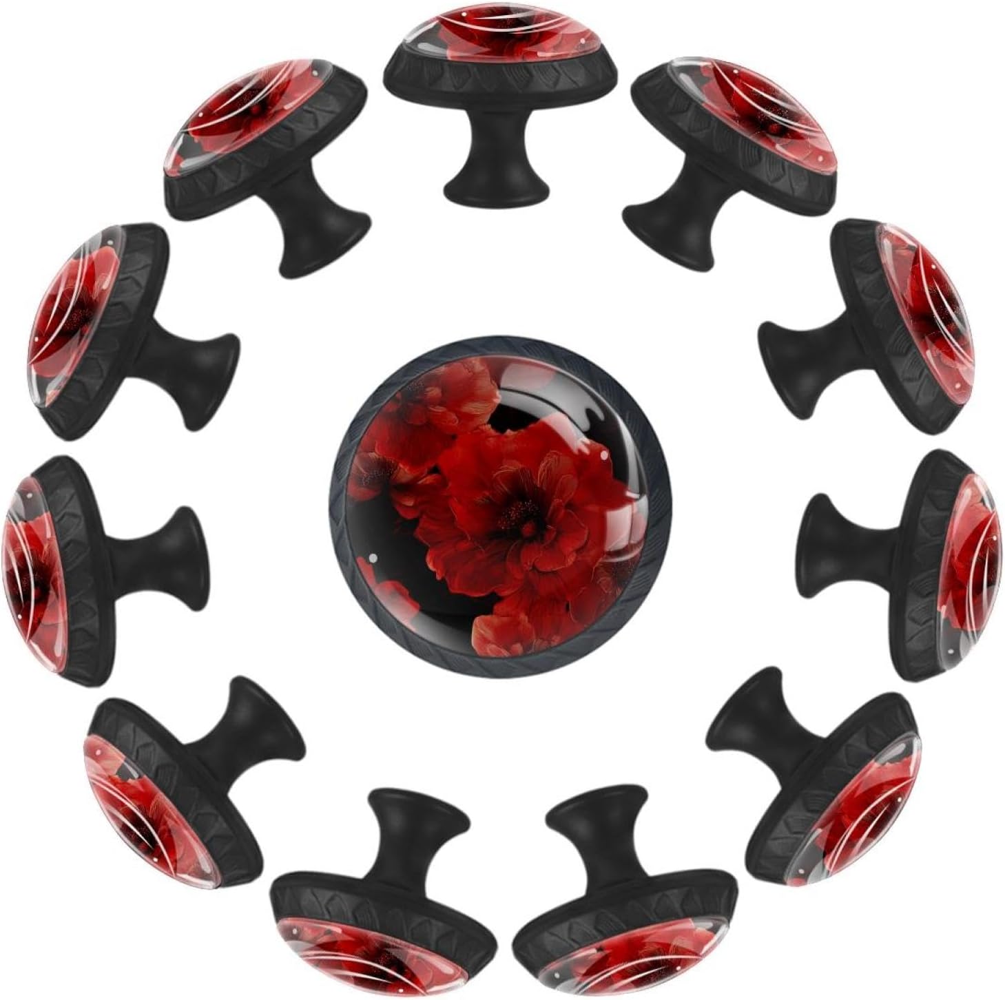 Make your home a sparkly new look with the help of our unique cabinets knobs!Our pull handles provide an easy but unique way to renew your furniture, keeping your home furniture always being stylish and modern.Product Introduction:1. Material: Crystal glass + black ABS handle, long-lasting hardware.2. Shape: Round mushroom design, looks cute and easily match any home furniture.3. Size: 1.37 x 1.10 x 0.66 IN/35 x 28 x 17MM. Two lengths of screws are available for you. Short 0.8x2.8CM/0.31x1.1IN, Long 0.8x3.5 cm/0.31x1.37 IN. You can choose the appropriate length according to the thickness of the furniture.4. Decorative Appearance: No matter you like cute, funny or art patterns, our store ensure that everyone can find his/her favorite drawer knobs.ApplicationOur drawers knobs are ideal for drawers, closets, cabinets, dressers, bookcases, jewelry boxes, wardrobes, cupboard, etc., help you easily open and close drawers. It can be used in many places, such as kitchen, bedroom, bathroom, living room, nursery, etc.Package Included12 X Drawer Knobs Handles, 24 X Stainless Steel Screws (12 short+12 long), and the pulls are easy to install, just remove the crystal glass drawer handle, put the screws through the furniture to be installed and tighten them.