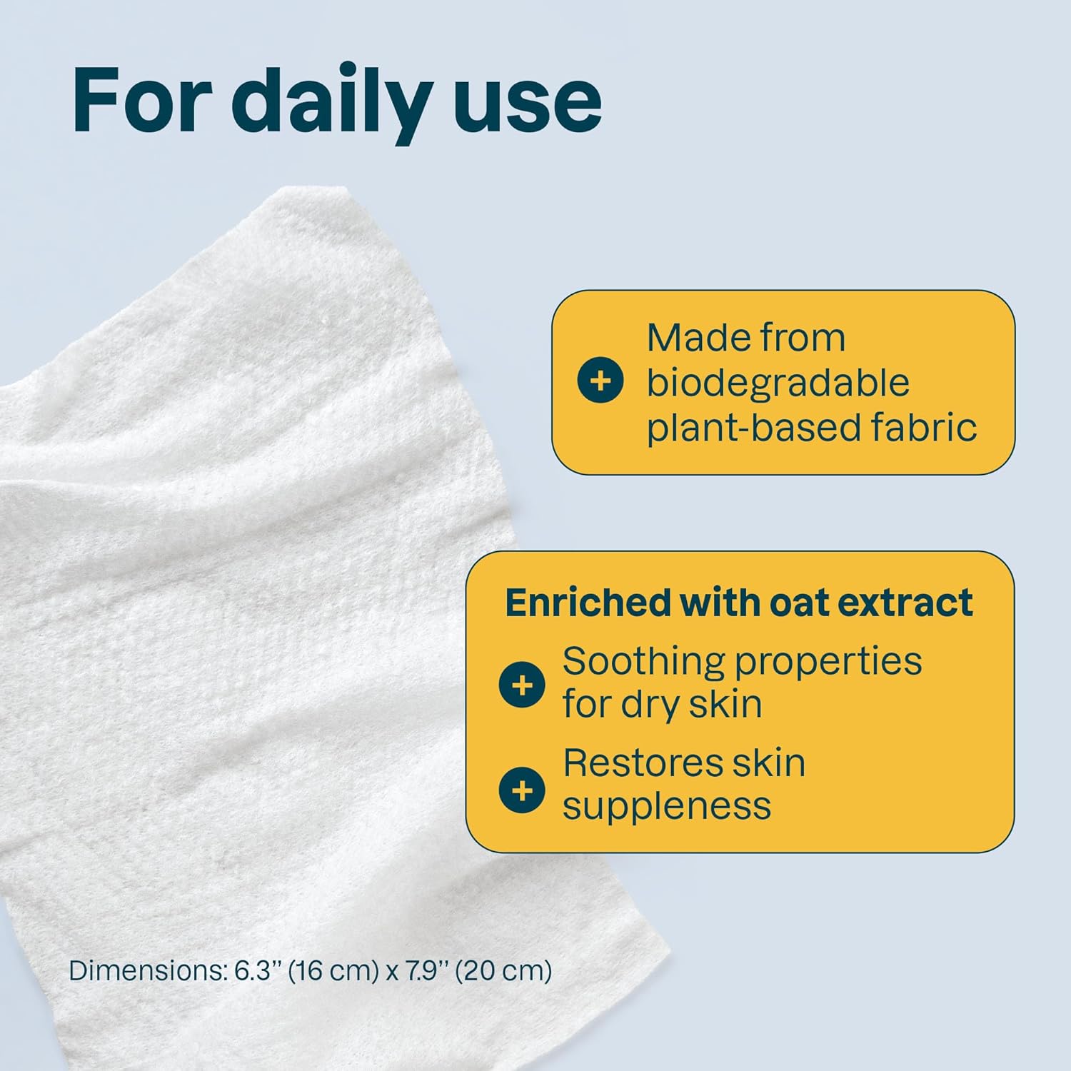 Our baby wipes are enriched with oat to improve the appearance of dry skin while soothing discomfort related to dryness. They also contain chamomile with revitalizing properties for skin. With no added fragrance, these wipes help you keep your baby’s skin clean and fresh, wherever you go. These biodegradable wipes are dermatologically tested, vegan and cruelty-free.