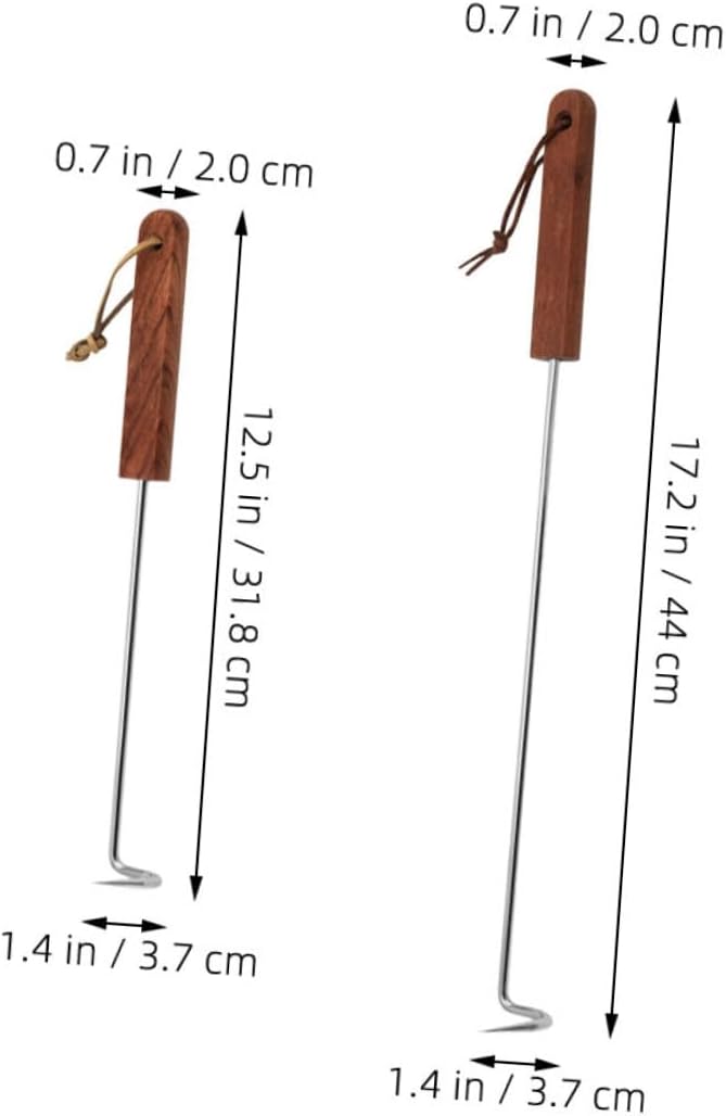 Package List 8 x Meat Hooks Characteristics -Size:31.80X3.70X2.00cm/12.50X1.45X0.79in picnic barbecue turner -Size:44.00X3.70X2.00cm/17.29X1.45X0.79in outdoor -Material:Stainless Steel, Wood grilling -Color:Brown barbecue turner hook - The stainless steel material is sturdy and strong, which is wear resistance and practical for the lasting time use hanging. - The hook is very pointed, easy to insert into the meat and the hanging of the meat is effortless meat. - Practical meat hanger for hunters, BBQ grill, kitchens, meat shops or other food prep settings barbecue flipper. - With fine workmanship, and the Meat Hook is not easy to wear or tear, very practical in use barbecue meat flipper. - The sturdy Meat Hook is widely used for BBQ, camping and beach excursions and various parties griddle.Goods Descriptionfood turner The hook is a good choice to use bacon and roast duck.picnic barbecue turner Are you still worried about not finding a suitable Meat Hook? Our meat hook is made of wood and stainless steel, which can be used for a longtime and are not easily damaged