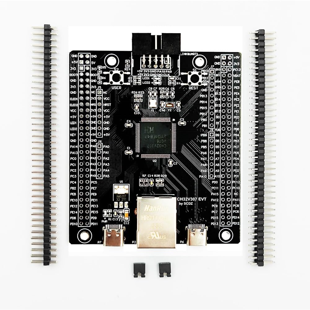 Ruitutedianzi USB-C port to connect to WCH-Link (selectable by jumper) - LEDs, Reset button, user button,Power Supply: Switch to select USB or external 5V power supply 5V to 3.3V voltage regulatorColour:BlackMaterial:PC+metalPackage Contents:1 x CH32V307 Evaluation Board Kit(Due to different product batches, the appearance may be different, which does not affect use.)Only the above package content, other products are not included.Note: Light reflection and different displays may cause the color of the item in the picture a little different from the real thing. The measurement allowed error is +/- 1-3cm.