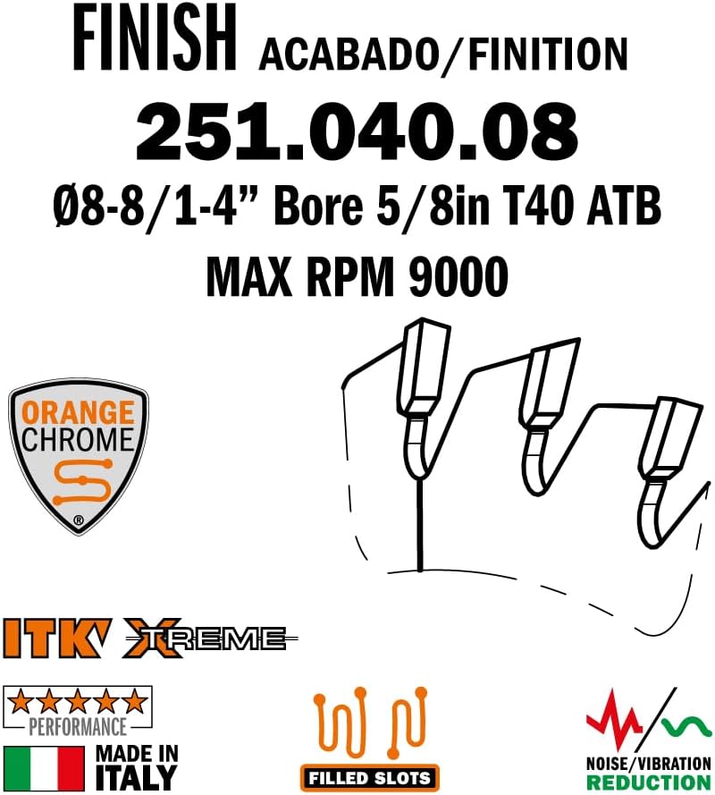 | Included Components | ITK Fine Finishing Saw Blade D=8-8-1/4 B=5/8 ß=ATB 15 K=0.094 P=0.064 a=10 |