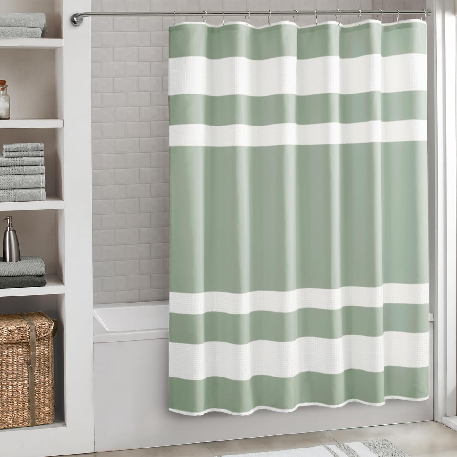 Upgrade your space with the Madison Park Arbor Waffle Shower Curtain, crafted from cationic-dyed woven fabric. Designed with grommets for effortless hanging, it features a 3M water-repellent Scotchgard treatment to keep water at bay and maintain freshness. Made from 100% polyester, this shower curtain combines durability with a sleek aesthetic. The textured waffle weave enhances any bathroom's style while ensuring lasting performance with its practical features.