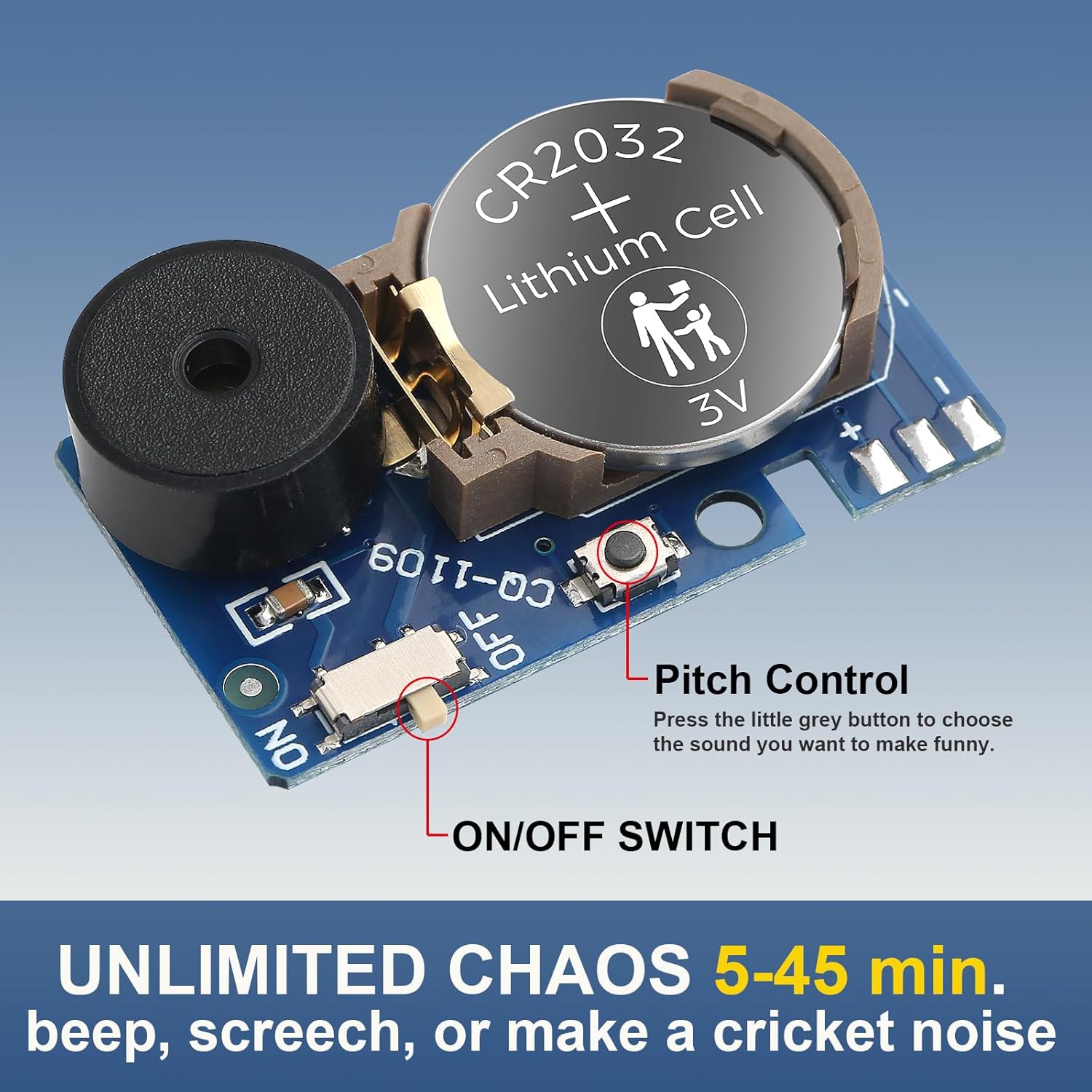 Introducing the cricket noise maker prank (3 pack), the ultimate hidden beeping prank kit for adults. This small and compact noise maker is perfect for funny office pranks, home, school, car, or any party setting. With its long battery life, it can last for several months, making it a great gag gift for prank lovers. The beeping sound is irritating yet hilarious, ideal for hidden pranks that will keep everyone guessing. Whether you're looking for prank stuff for adults or just want to add some fun to your day, this cricket noise maker is the perfect choice. The kit includes several noise makers, ensuring you have enough for multiple pranks. Suitable for office, home, school, or car, this new noise war-cricket noise maker prank is a must-have for anyone who loves a good laugh. Small size and long battery life make it easy to hide and use whenever you want. Get ready for endless fun with this beeping prank lrritating noise maker!
