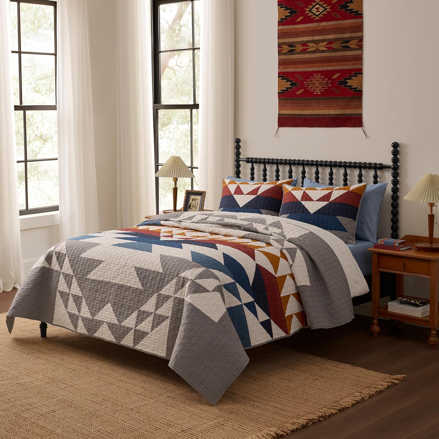 Bring warmth and character to your bedding collection with the Pendleton Explorer King/California King Quilt Set, a versatile layering piece crafted for comfort and style. Designed to elevate any bedroom, this oversized quilt showcases a classic Pendleton pattern on one side and a smooth solid reverse—offering two looks in one. Whether styled on a king bed, as a lightweight comforter king size, or layered with an oversized king bedspread, it brings a cozy, tailored finish. Made from cotton, this breathable king quilt offers year-round softness and comfort. It complements king size comforter sets, king size duvet inserts, and cotton quilt king collections, fitting seamlessly into bedding routines across seasons. The refined texture suits farmhouse king size comforter set styles and oversized king bedspreads alike. Machine washable and OEKO-TEX STANDARD 100 compliant, this quilt is hypoallergenic and easy to maintain—designed for everyday bedding without compromising on comfort. The King/Cal King quilt measures 110 inches x 96 inches or 279cm x 243cm and includes two king shams measuring 20 inches x 36 inches or 50cm x 91cm—sized to coordinate with king size quilts for bed, king quilt sets with shams, or comforters king size.