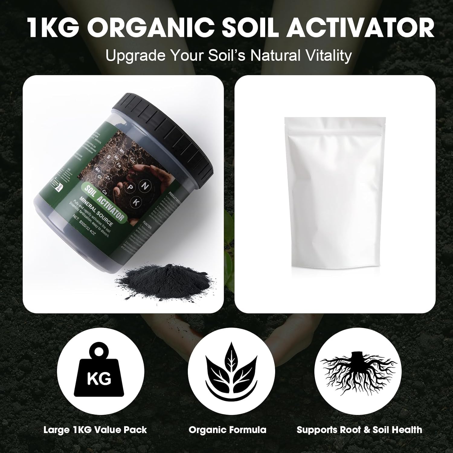 Root Drops IBA Rooting Hormone for Cuttings, Propagation for Houseplants Water/Soil/Moss/LECA + Organic Soil Activator for Potting Mix & Compost, Root Growth Booster, 4.06 oz + 1000g