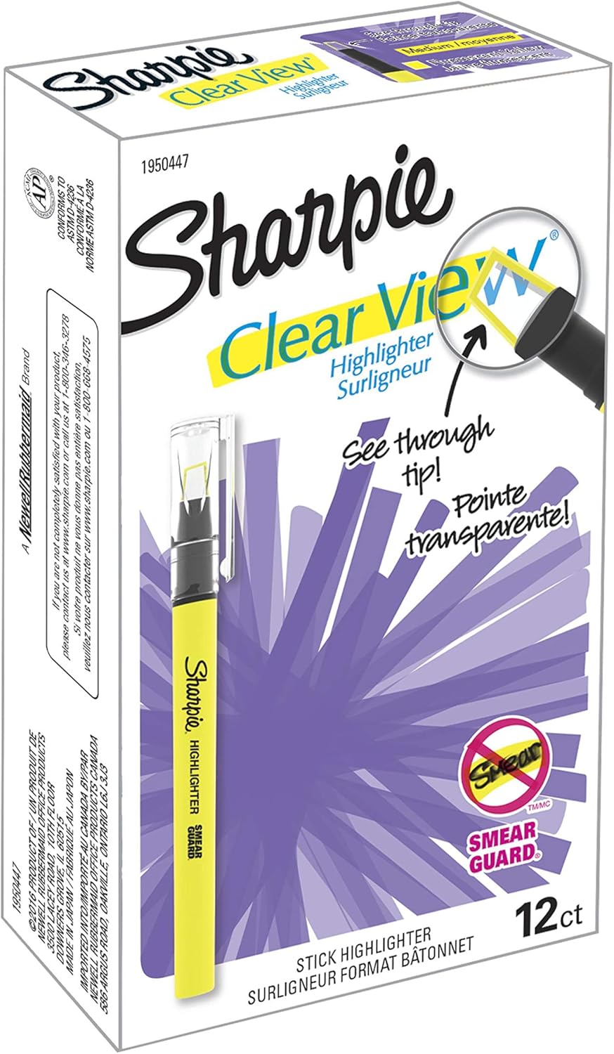 Enjoy precision highlighting with the clear, see-through tip and slender grip of the Sharpie Clear View Highlighter Stick. A transparent tip and smooth, fine chisel end allow you to keep your eyes locked on text and precisely highlight across the page. Meanwhile, the slim barrel is easy to hold and has a slender profile that slips into a notebook or backpack. Sharpie Clear View ink dries quickly, so pages stay neat and easy to read. With Sharpie Clear View, you always know when to stop highlighting.