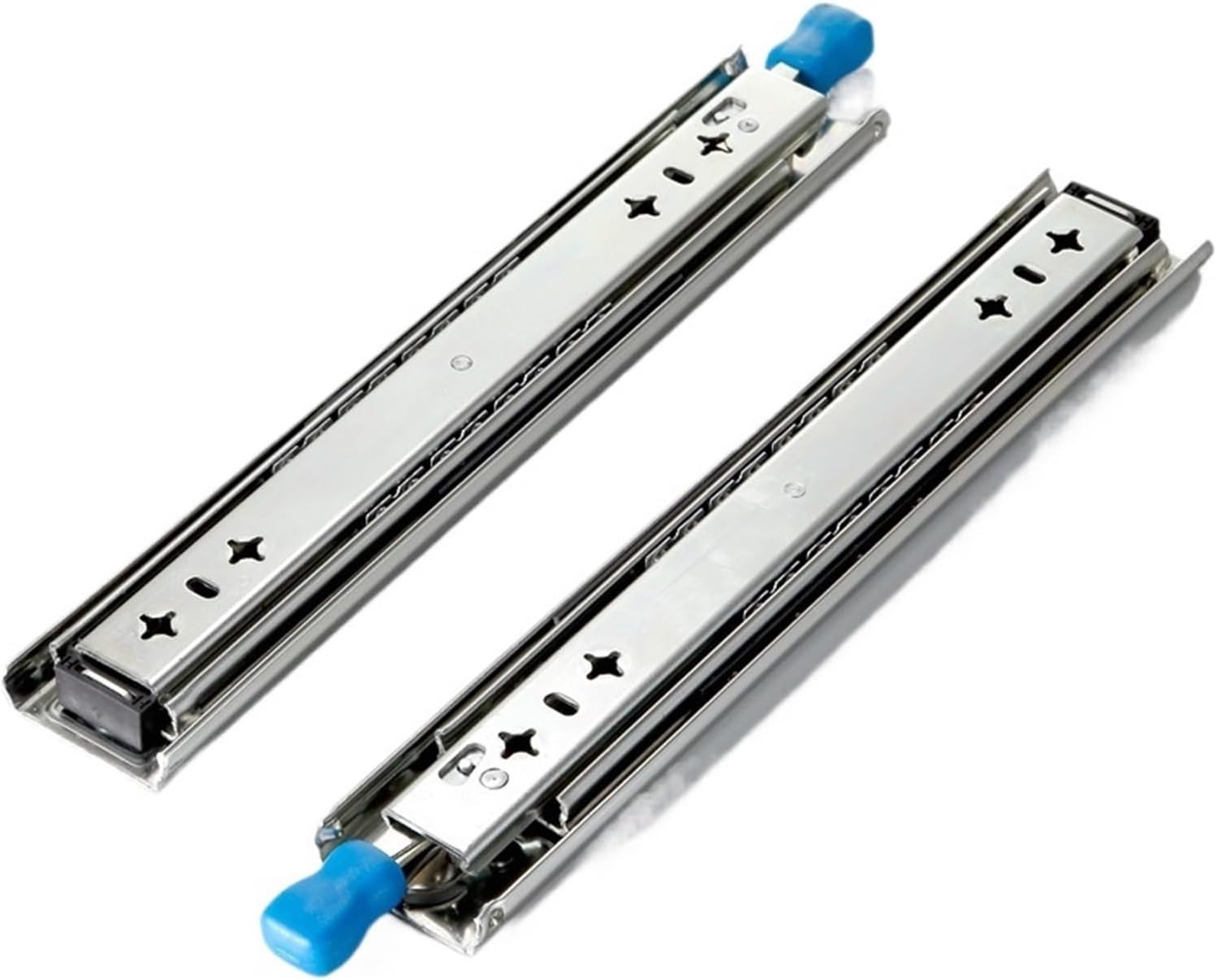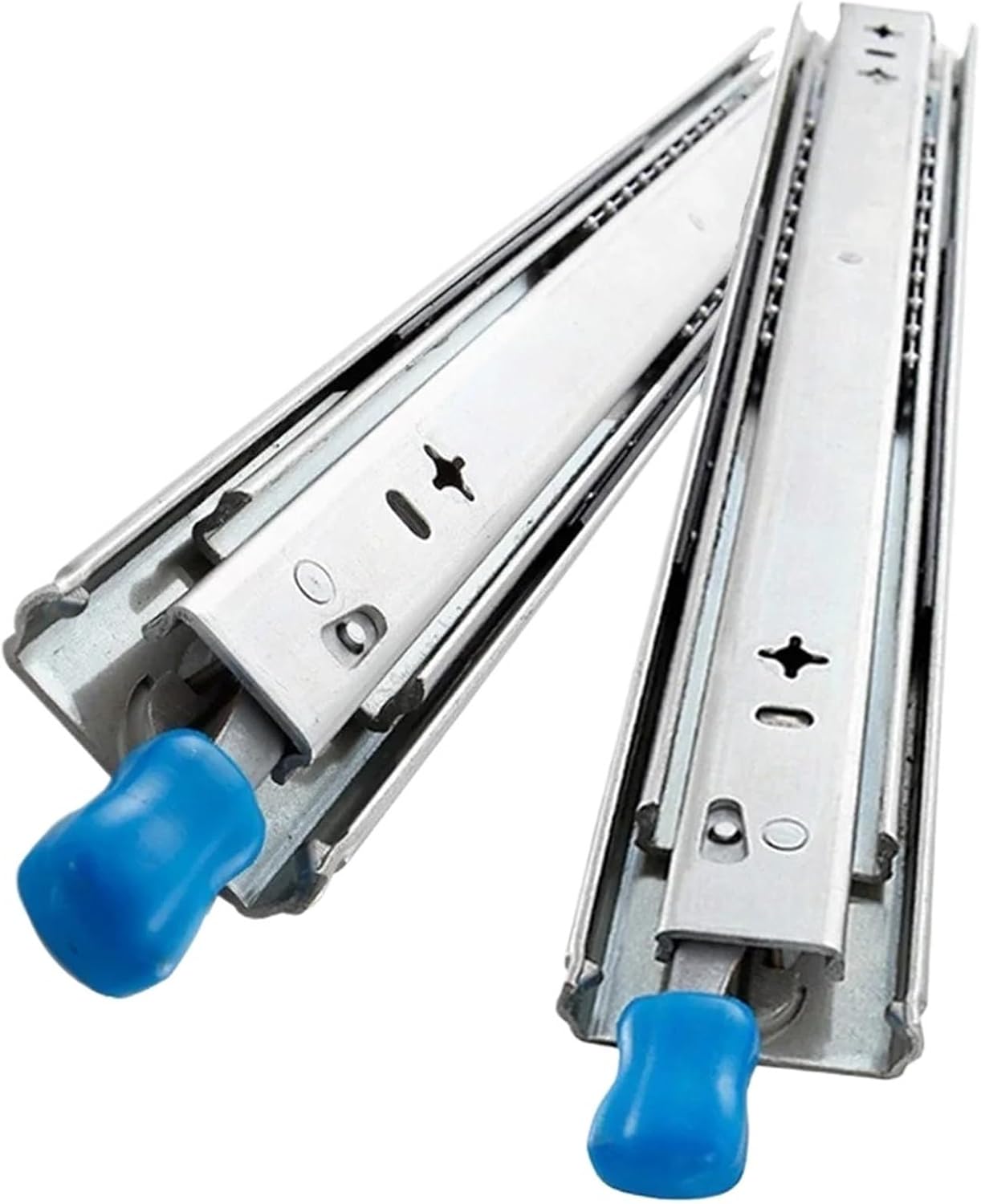1. Concealed drawer slides give your drawers a clean and aesthetically pleasing look while maintaining practicality.2. We offer a variety of drawer slide sizes to meet different size and usage needs.3. Suitable for kitchens, studies, pantry, and other storage spaces.Parameters:Width: 53mmThickness: 2.0mmSurface treatment: Seal blue Pulling open method: Three sections open full spreadInstallation gap: 19mm+-0.5Maximum load: 260 lbs (120kg)Material: Cold rolled steelPlate thickness: Outer track-2.0mm Middle track-2.0mm Inner track-2.0mmApplicable scope: Warehouse cabinets, financial equipment, industrial drawers