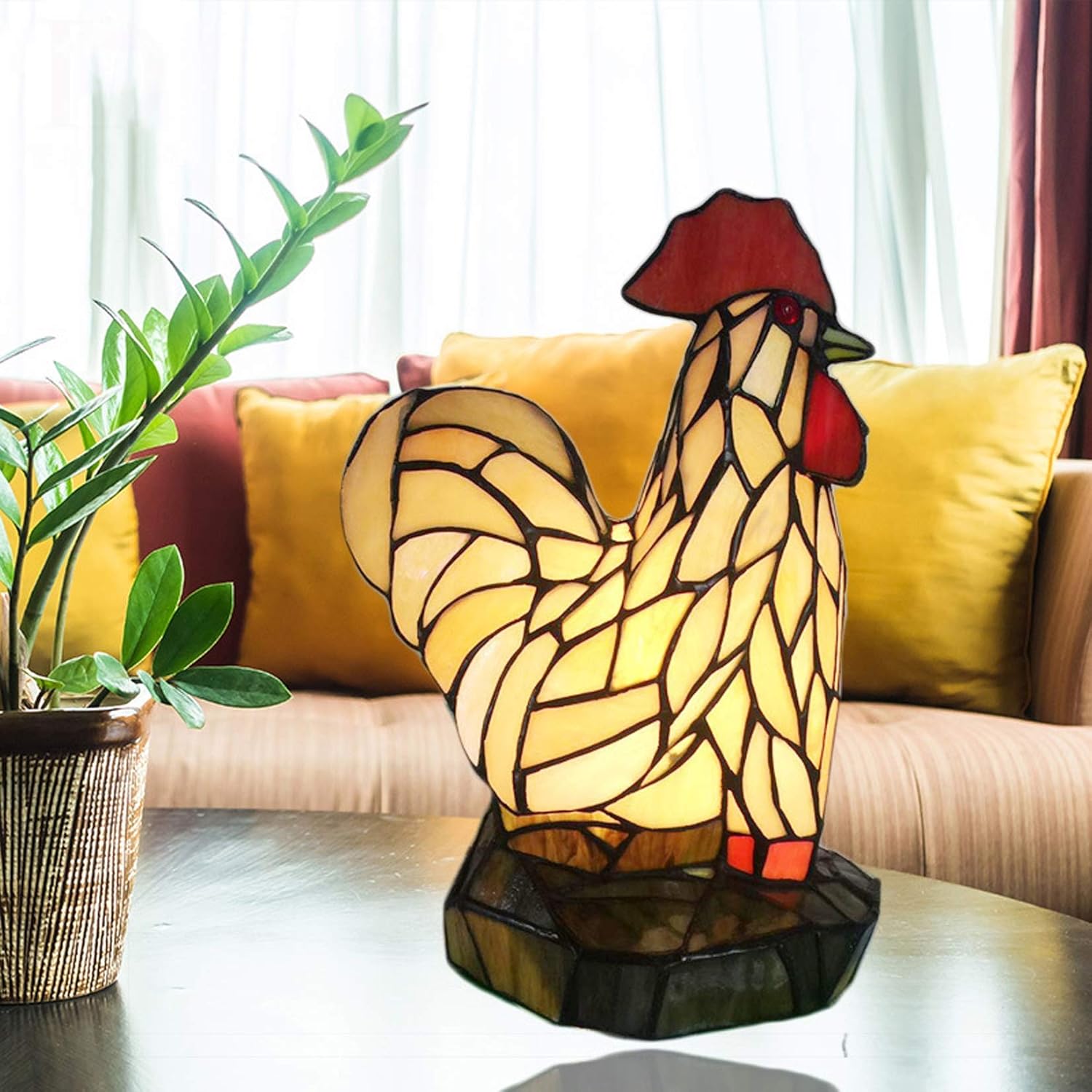 ★ Product Name: Errzom Antique table Lamp, Tiffany Style Rooster Table Lamps, Decorative Table Light, vintage Desk Light, Retro Living room lighting Light Fixtures, Bedside Lamp, Bedroom Lamp, Accent Lamp, Eye Protection Lamps ( nightlight crafts gifts for kids )★ Style:Tiffany Style lamp, Animal style lamps,Retro Style lamps, European style lamp,farmhouse style lamps★Lamp body size: W 24cm/9inch ,H 34cm/13inch★ Lamp specifications: E27 * 1 ( without light source )★Voltage: 110V-240V★ Packing: 1 box / 1 piece. Outer box size: 30CM * 30CM * 40CM ★ This Errzom Tiffany Table lamp gross weight: 4 KG★ Switch: push button switch★ Stained Glass Rooster decorative Lamp shade material : Tiffany Style stained glass★ Lamp Base material:Antique glass Base★ Suitable for light sources: incandescent bulbs, energy-saving bulbs, LED lights★ Applicable places: hotels, bars, restaurants, study room, living room, bedroom, bedside table, end table, coffee shop, children's room, college dorm room★ Quality Assurance: Passing international safety and environmental protection standards CE certification, UL certification, PSE certification, ROSH certification★Easy to clean:As a handicraft, Errzom Tiffany style's luminaires need to be maintained. After the second to third months, the Tiffany lamp will lose its luster due to moisture and dust in the air, or the surface tin wire will turn white. In this case, simply wipe the surface of the lamp cover.