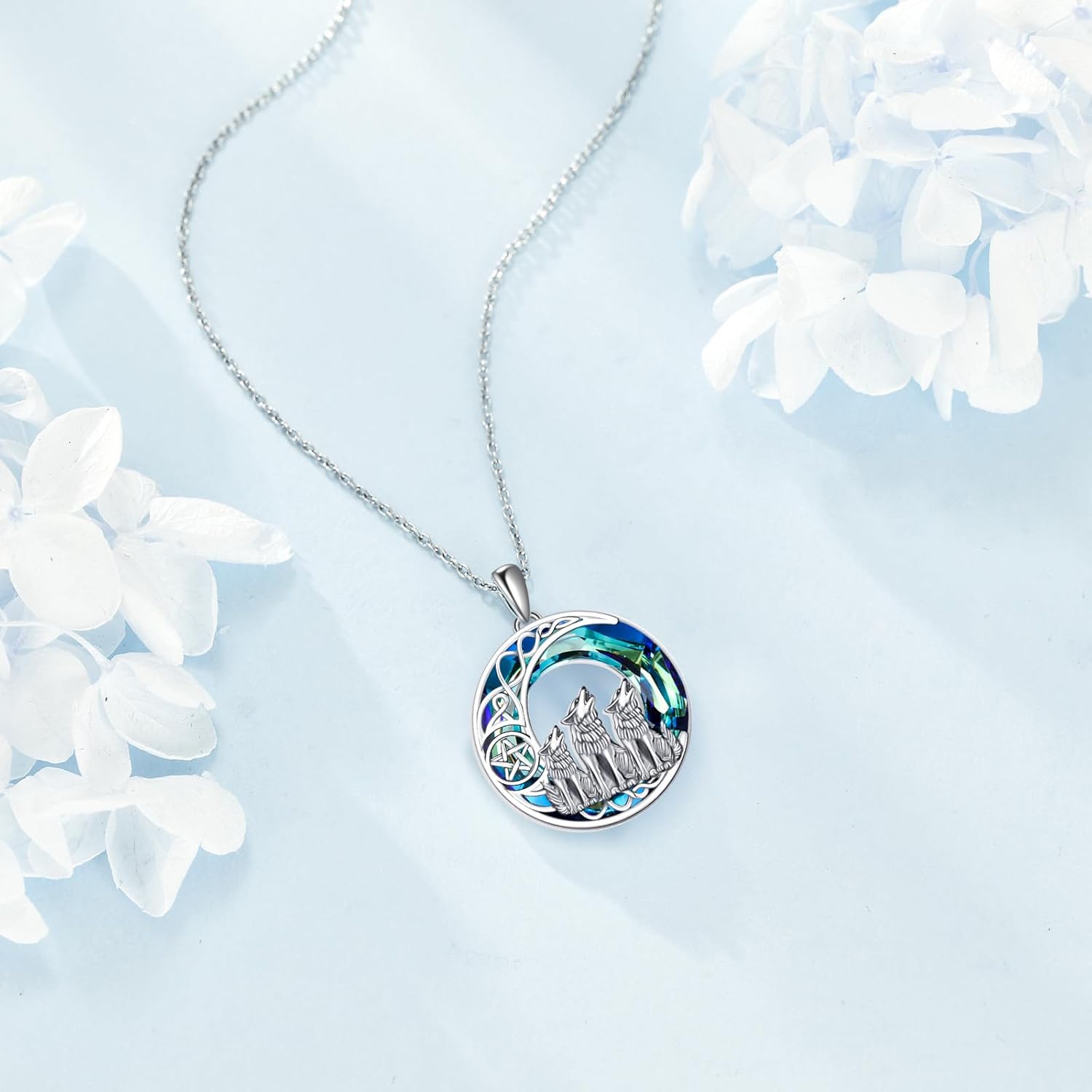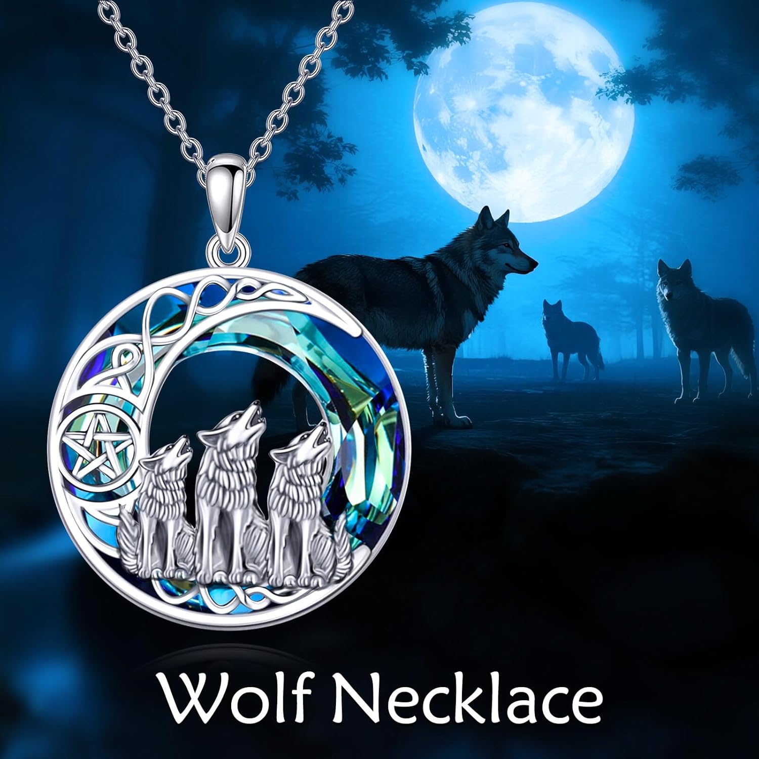 Wolf Necklace Sterling Silver Crystal Wolf Jewelry for Women