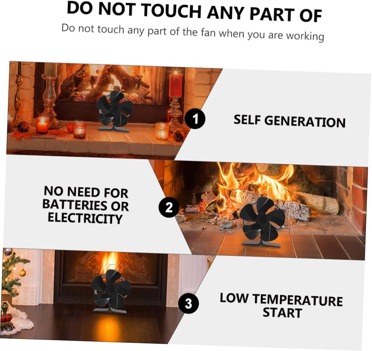 Package List 1 x fan Characteristics - Material: Aluminum alloy. - Size: 13.00X11.00X6.50cm/ 5.11X4.32X2.55inch. - Color: Black. -Product Info:Fireplace fan - It is a fashion item that add the warmer atmosphere of your home and it is mini, portable, useful stove fans. - No electricity needed, no external power source needed, less consumption, stove fan fireplace stove fan. - Specially crafted aluminum blades, passed centrifuge test, well balanced and you can safely use it heat powered fan. - Works , wood, or pellet stoves. Warm up your room with this stove fan heating fan. - Efficiently drive warm air throughout the room. Less consumption but more efficiency furnace fan.Goods Informationfireplace stove fans It is and has a .heating fan This stove fan is designed for usage on freestanding stoves with a normal surface temperature.stove fans It works because heat is a form of energy.furnace fan How is this stove fan working without batteries or electricity? It seems impossible, but this fireplace fan runs without batteries, cords or electricity